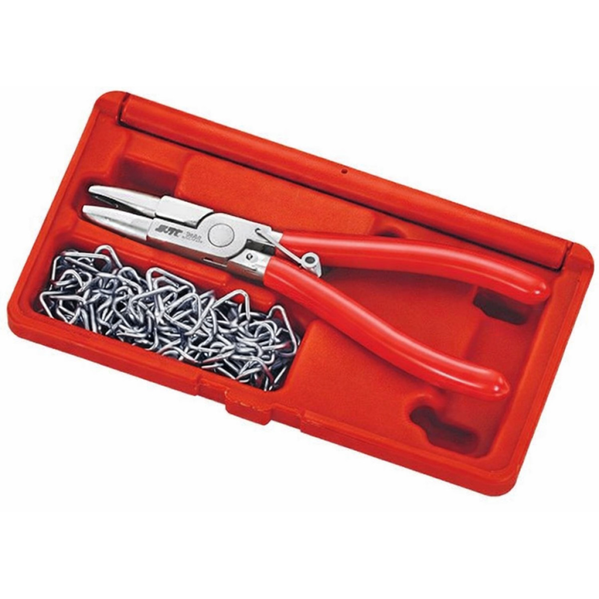 Кліщі для обжиму кілець кріплення обивки сидінь JTC 5536S спеціально розроблені для надійного зажиму скоб під час ремонту та перетяжки автомобільних сидінь. Інструмент забезпечує точне та міцне кріплення обивки без пошкодження матеріалу, що робить його ідеальним для професійного використання. Кліщі виготовлені з високоякісної сталі S45C з матовим хромованим покриттям, що гарантує високу міцність, зносостійкість і тривалий термін служби. У комплект входять 100 кілець для кріплення обивки, що дозволяє відразу приступити до виконання робіт без необхідності додаткових витрат. Довжина інструмента 180 мм забезпечує зручність і контроль під час роботи.