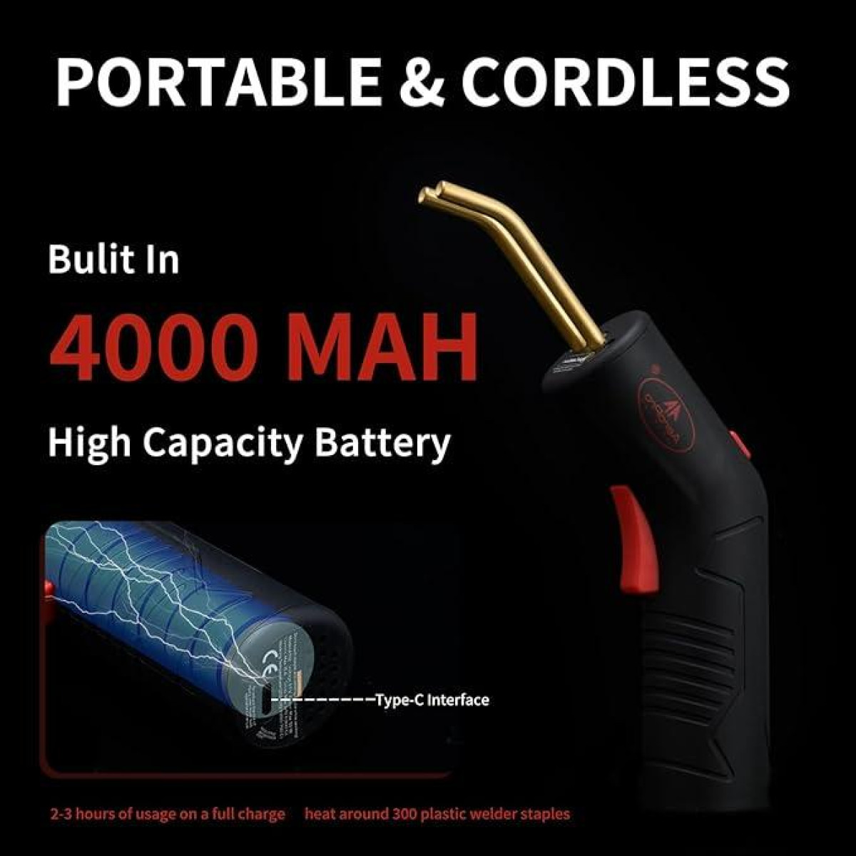 AEROPRO A702 — це зручний бездротовий термостеплер, призначений для швидкого та надійного ремонту пластикових деталей автомобіля: бамперів, панелей, корпусів, кріплень тощо. Пристрій працює від вбудованого акумулятора, що робить його мобільним і придатним для використання як у майстернях, так і в польових умовах.