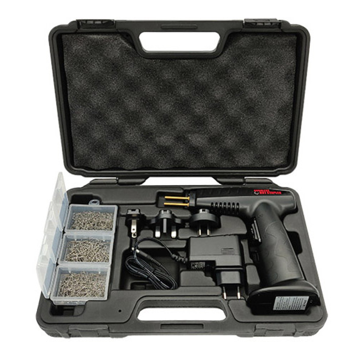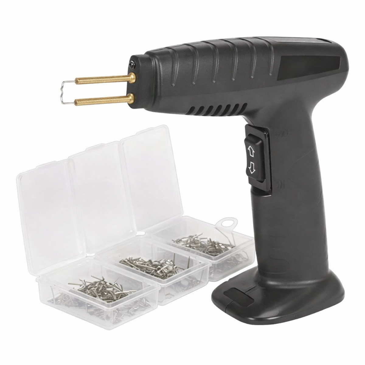 Термостеплер для ремонту пластику TRISCO-WSC-301 призначений для пайки та зміцнення пластикових деталей автомобіля. Інструмент ефективно застосовується для ремонту бамперів, приладових панелей, тримачів ламп, пластикових кілець, радіаторів та інших пластикових елементів, а також пластикових деталей мотоциклів та інших транспортних засобів. Компактна конструкція забезпечує невелику вагу 1,3 кг і зручність у використанні, що робить інструмент придатним для тривалої роботи без втоми. Пристрій підтримує три температурні режими: низький, середній та високий, що дозволяє адаптувати процес ремонту до різних типів пластику. У комплект входять 300 скоб із нержавіючої сталі, які використовуються як ремонтні штифти для армування тріщин і пошкоджень, забезпечуючи міцність і довговічність відновлених ділянок.