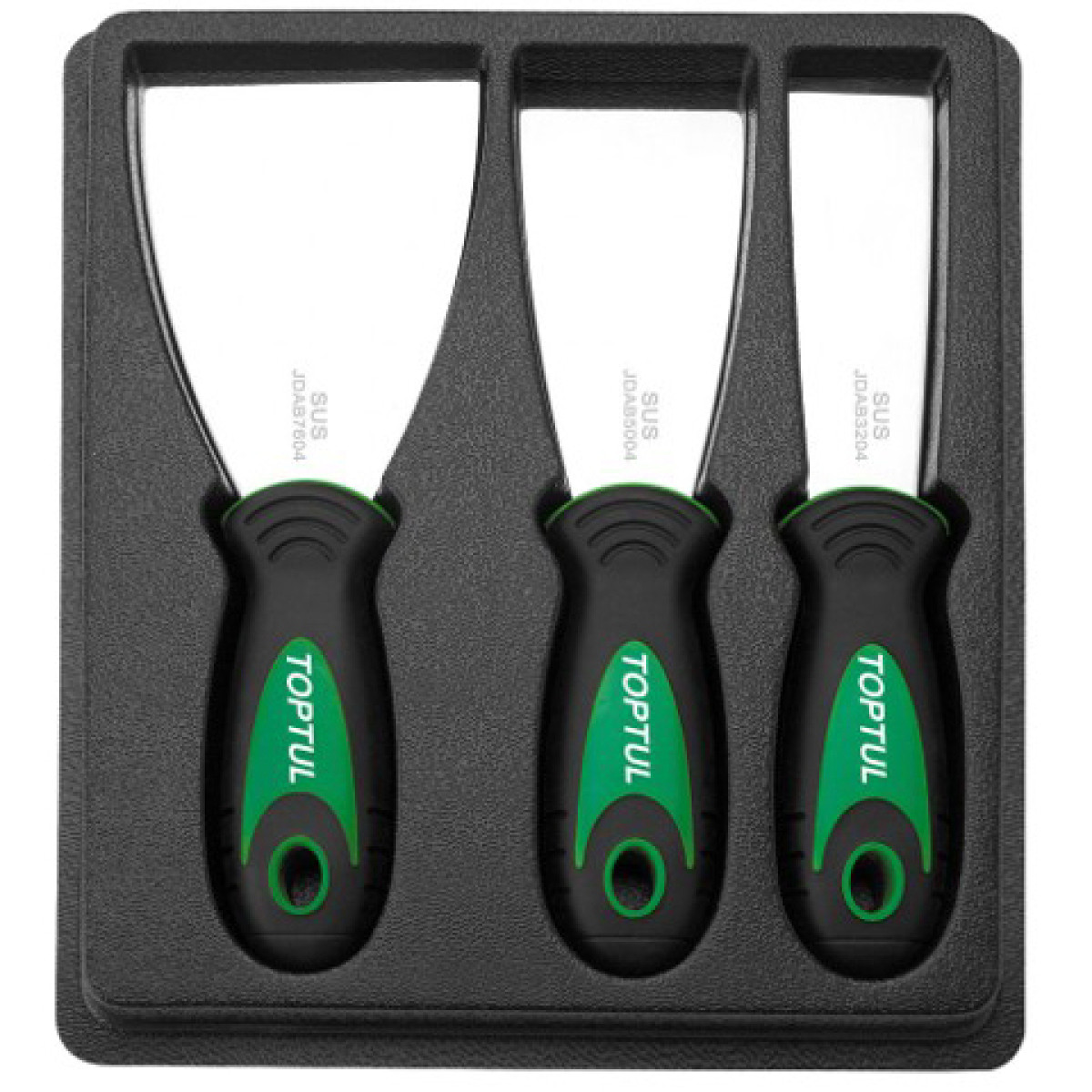 Набір металевих шпателів TOPTUL JGAT0301 призначений для шпаклювальних, малярних і кузовних робіт, а також для підготовки поверхонь перед фарбуванням. Інструменти забезпечують точне, рівномірне та контрольоване нанесення шпаклювальних матеріалів, що дозволяє досягти якісного фінішного результату. Робочі леза виготовлені з нержавіючої сталі SUS, яка гарантує високу корозійну стійкість, довговічність і стабільність форми навіть при інтенсивному використанні. Товщина леза 0,5 мм забезпечує оптимальну гнучкість і керованість, а розмір полотна 76 × 100 мм дозволяє ефективно працювати на середніх і локальних ділянках поверхні. Шпателі оснащені ергономічними комбінованими рукоятками з ABS-пластику та термопластичної гуми TPR, що забезпечує надійний хват, комфорт у роботі та зниження втоми рук. Набір ідеально підходить як для професійного використання, так і для побутових ремонтних робіт.