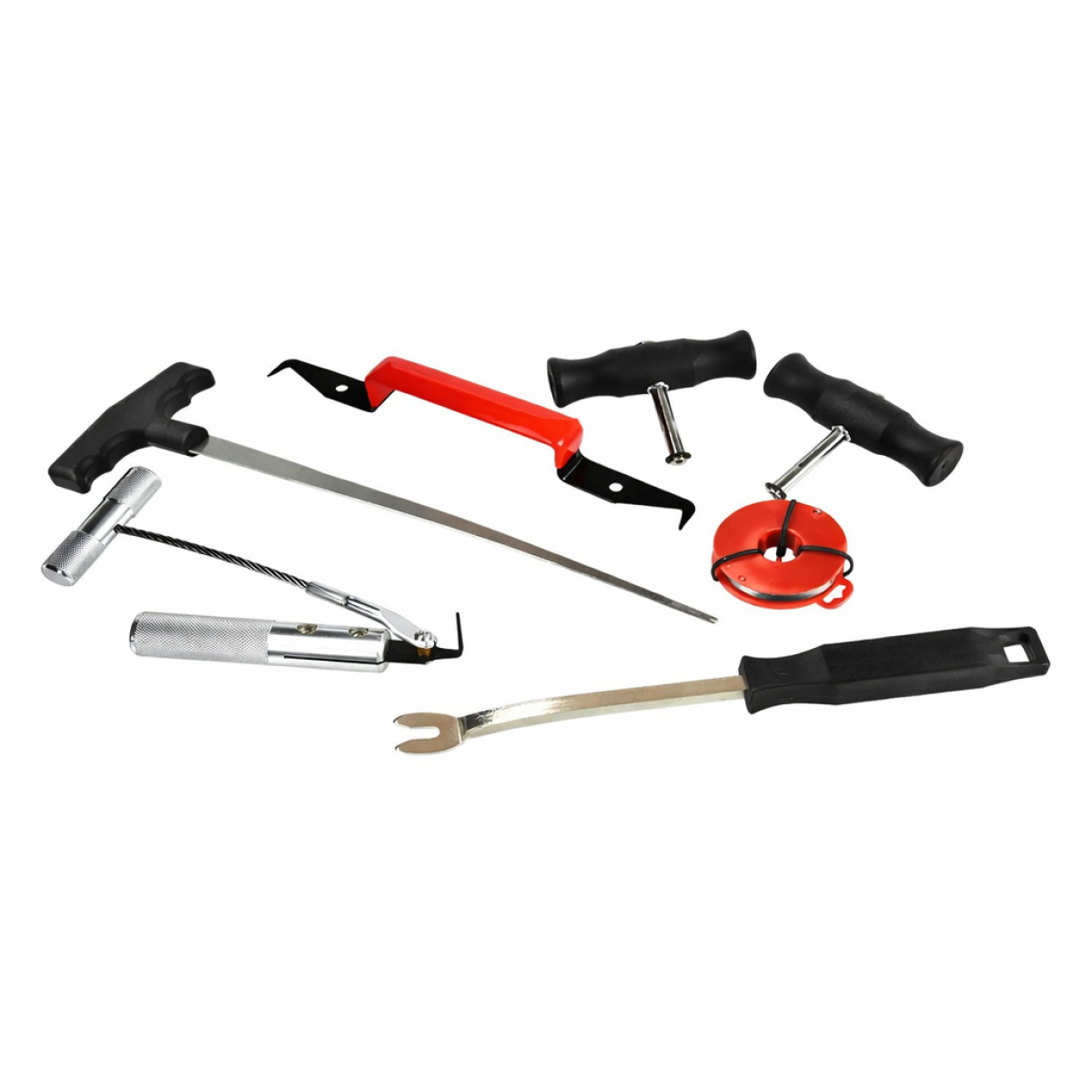 Набір для вирізання автомобільного скла призначений для. Інструменти виготовлені з хром-ванадієвої сталі, що , , . Комплект дозволяє , , . Набір містить усі необхідні інструменти для повного циклу робіт зі зняття лобового та іншого автомобільного скла й підходить для використання на СТО та в професійних майстернях.