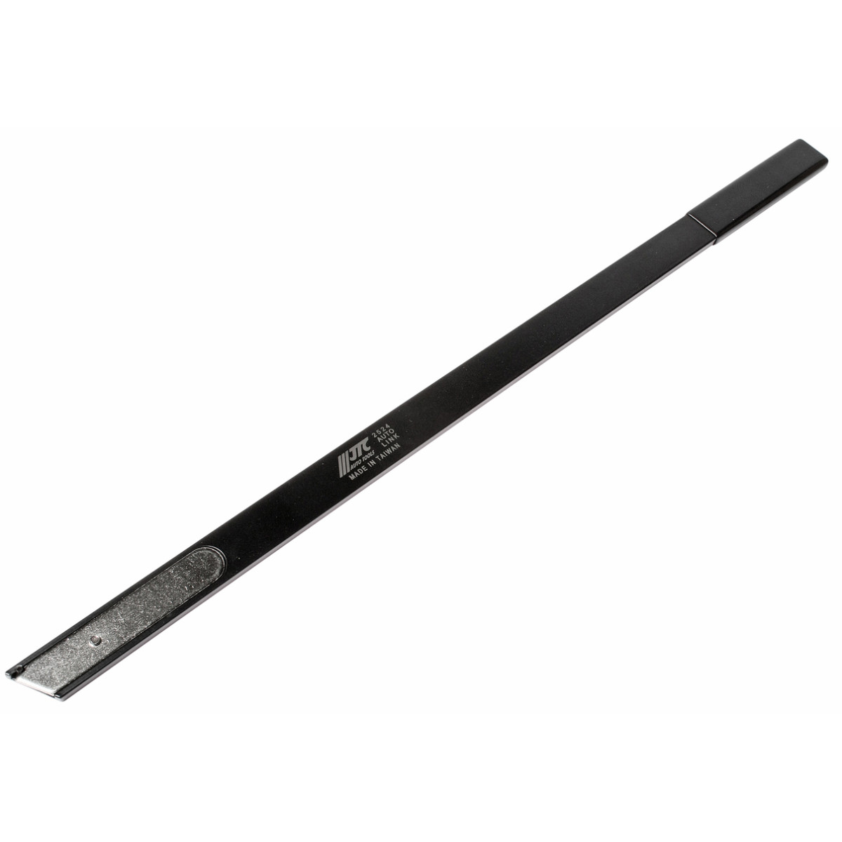 Ніж JTC 2524 призначений для акуратного підрізання клейового герметика (ущільнювача) з внутрішнього боку салону автомобіля під час демонтажу лобового, заднього або бокового скла. Конструкція інструмента дозволяє працювати у важкодоступних місцях та кутах скла, мінімізуючи ризик пошкодження лакофарбового покриття кузова. Загальна довжина 610 мм забезпечує необхідний важіль і комфортний доступ під час виконання робіт. Корпус ножа виготовлений з алюмінію, а тримач леза зі сталі, що гарантує високу міцність, надійність та тривалий термін експлуатації. Особливістю конструкції є можливість зберігання запасного леза безпосередньо в рукоятці, що підвищує зручність та ефективність роботи.