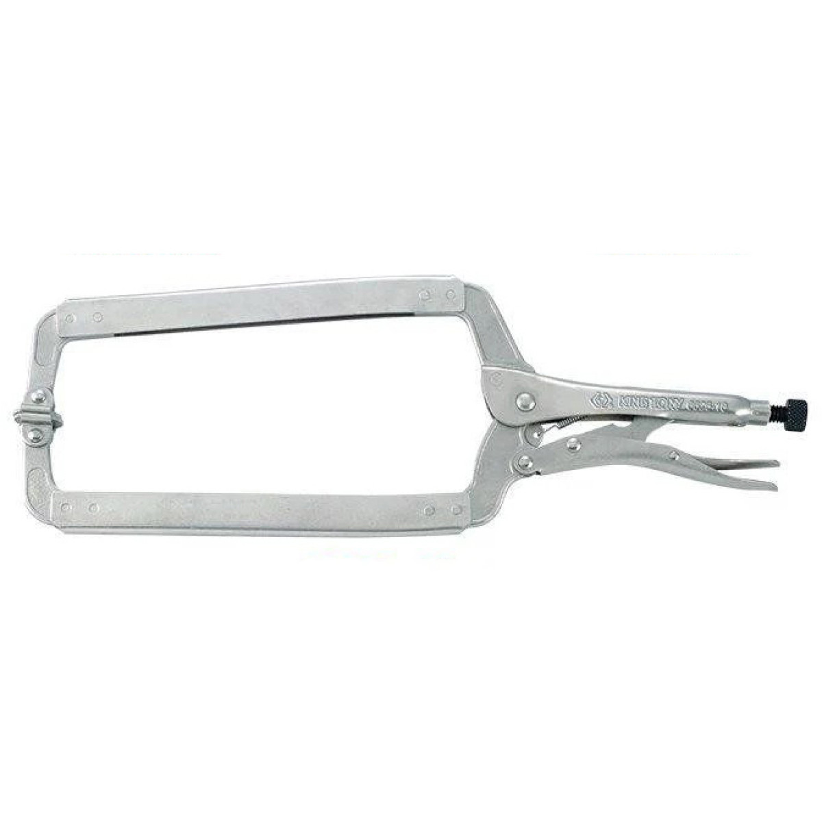 Кліщі зажимні з фіксатором KING TONY 6625-18 призначені для захвату та надійної фіксації листового металу й інших конструкцій, у тому числі під час зварювальних робіт. Інструмент має C-подібний профіль з дугоподібними рухомими губками, що дозволяє точно утримувати деталі різної форми та товщини. Кліщі виготовлені з хром-молібденової легованої сталі Cr-Mo, що забезпечує високу міцність, стійкість до ударних навантажень та тривалий термін служби. Регулювальний гвинт дає змогу точно налаштувати розмір зіву та зусилля зажиму. Полірована хромована поверхня захищає інструмент від корозії та зношування. Інструмент постачається у блістерній упаковці.