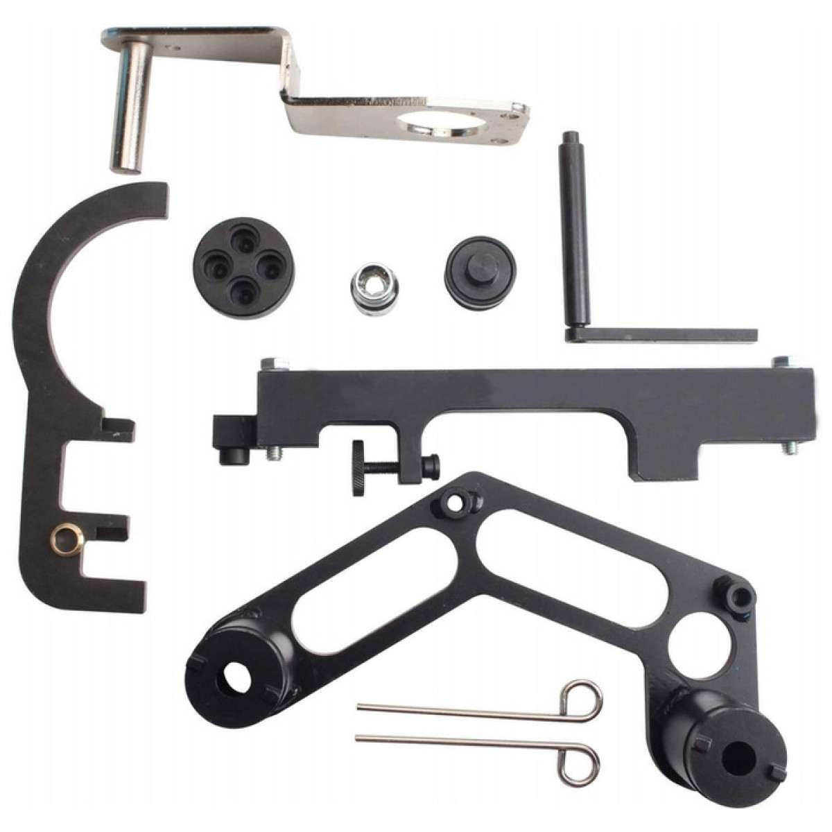 Комплект FALCON F04153 призначений для фіксації та регулювання фаз газорозподілу в дизельних двигунах BMW серії з ланцюговим приводом ГРМ. Набір дозволяє точно встановлювати колінчастий та розподільні вали, блокувати ТНВД і натягувач ланцюга, що робить його незамінним при ремонті та обслуговуванні двигуна.