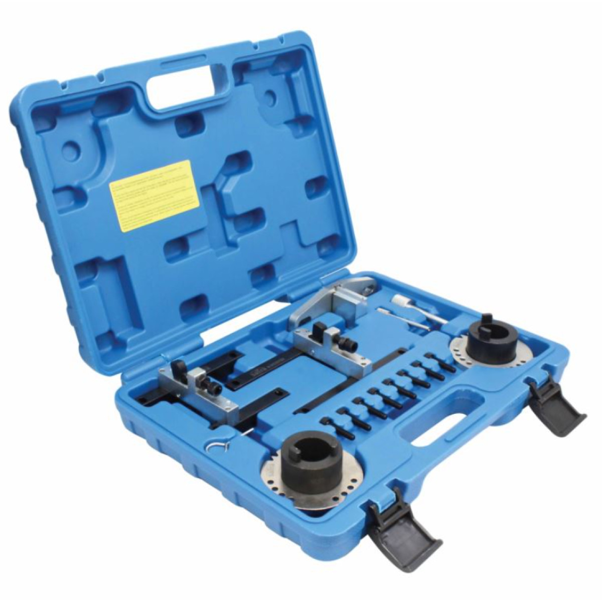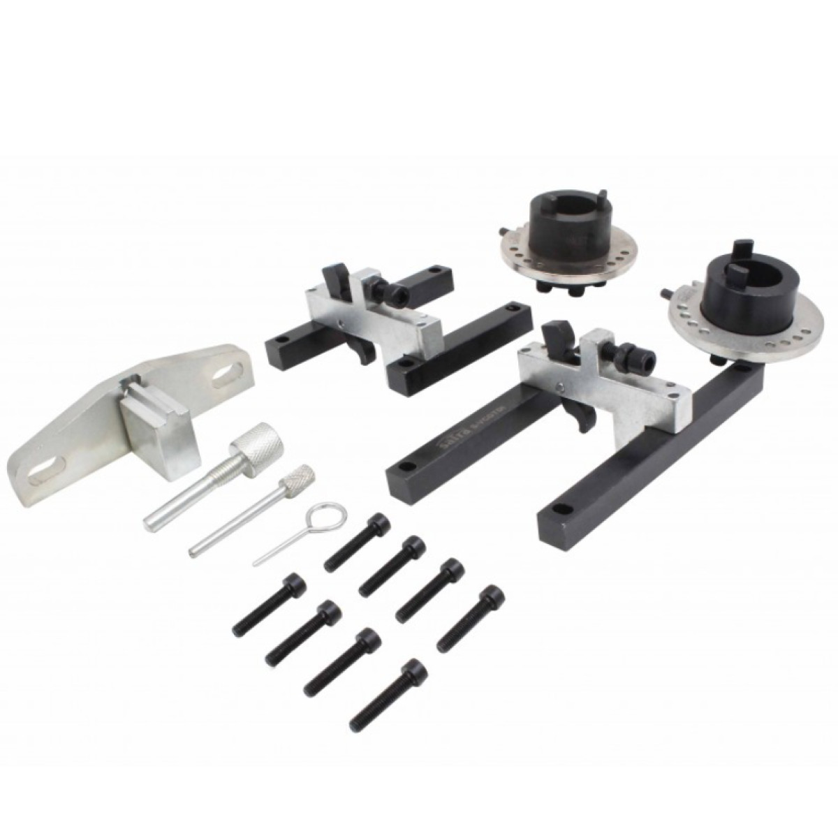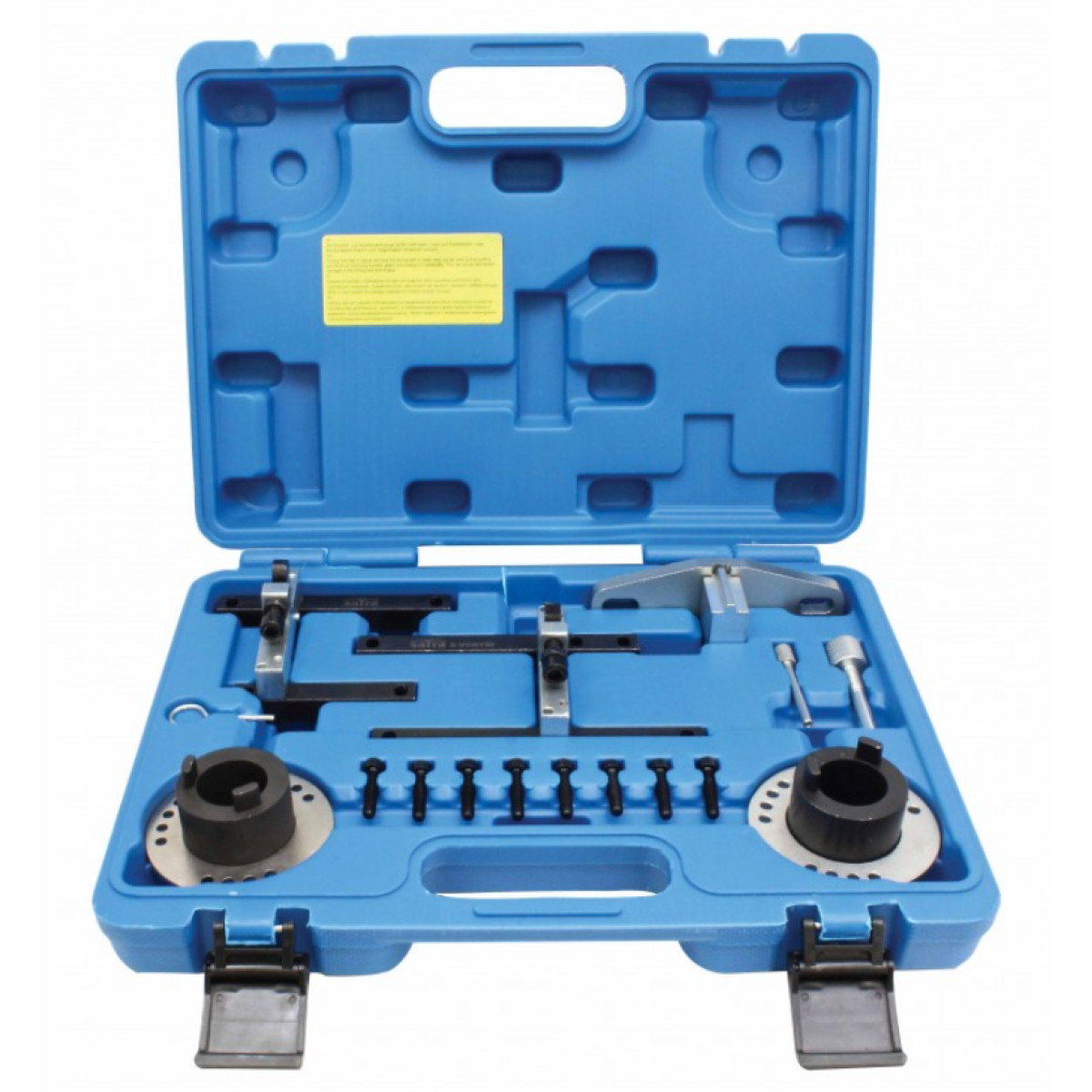 Професійний набір призначений для точної фіксації та регулювання фаз газорозподілу в з ремінним приводом масляного насоса. Використовується під час заміни ременя ГРМ, ремонту двигуна та сервісного обслуговування.