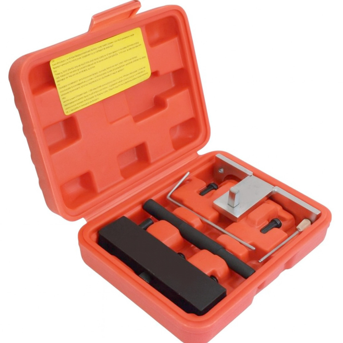У комплект входять усі необхідні інструменти для правильного виставлення фаз, включно з фіксатором колінвала, обома фіксаторами розподільних валів та гідравлічним натягувачем ланцюга.