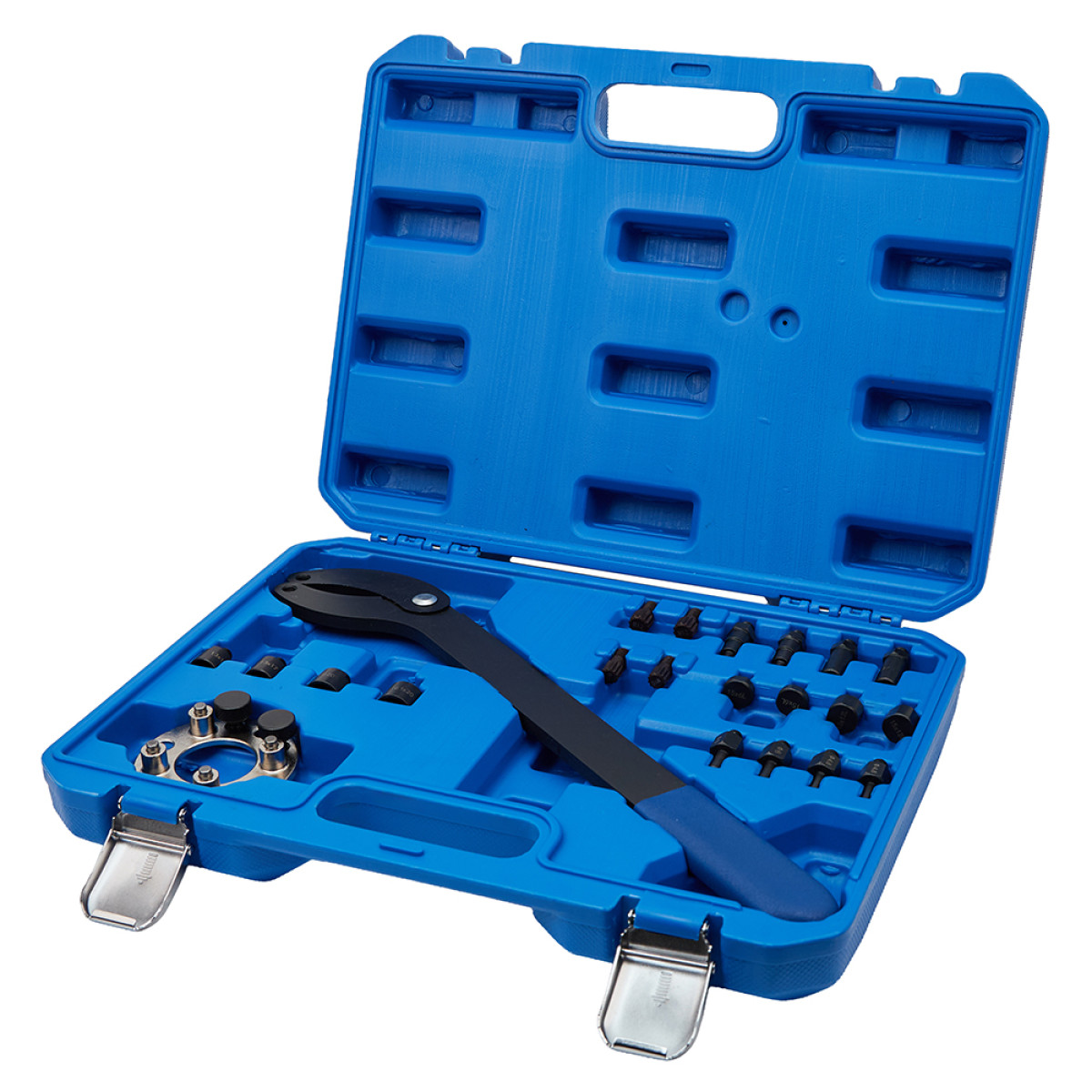 Професійний набір інструментів ALLOID призначений для точної установки фаз газорозподільного механізму в сучасних бензинових двигунах VAG з турбонаддувом та безпосереднім упорскуванням.