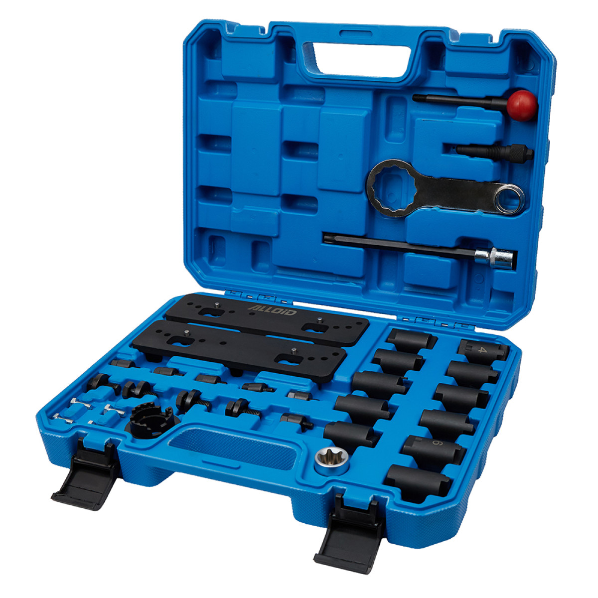 Професійний інструмент Alloid FP-2474 призначений для точної фіксації розподільчих валів у правильному положенні під час демонтажу та встановлення ланцюга ГРМ. Забезпечує високу точність робіт, надійність та безпеку обслуговування двигуна, мінімізуючи ризик пошкоджень і помилок при виставленні фаз.