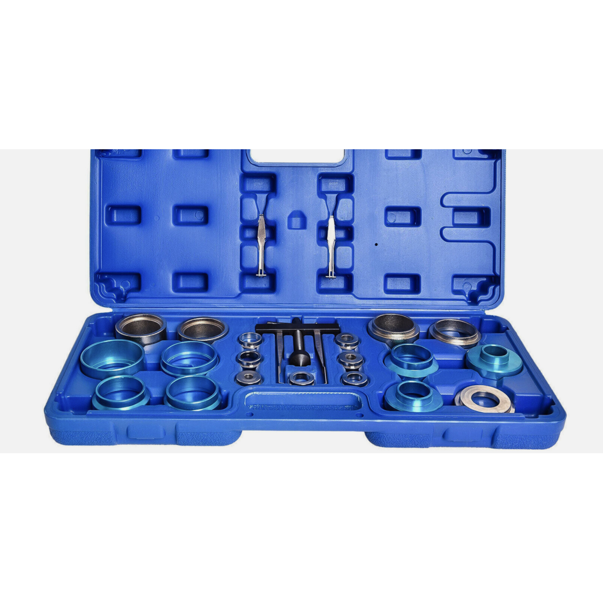 Набір підходить для більшості сучасних автомобілів з діаметром сальників від 27 до 58 мм. Оправки виготовлені з високоміцного алюмінієвого сплаву, що забезпечує рівномірне пресування та виключає деформацію нових деталей під час установки.