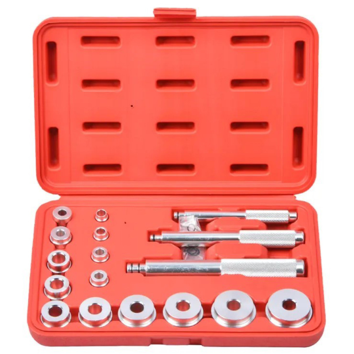 Набір оправок призначений для запресовування та демонтажу підшипників, сальників і втулок без пошкодження посадкових місць. Підходить для автомобілів, мотоциклів та іншої техніки. Усі елементи виготовлені з алюмінію, що забезпечує легкість, стійкість до корозії та довговічність. Набір дозволяє виконувати роботи швидко, точно та безпечно.
