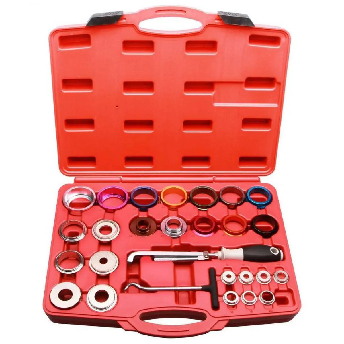 Знімач для сальників колінчастого та розподільних валів призначений для швидкого та безпечного демонтажу і встановлення ущільнень. Інструмент забезпечує точну роботу без пошкодження посадкових місць і навколишніх деталей. Підходить для використання в автосервісах і ремонтних майстернях, де важлива ефективність і зручність роботи.