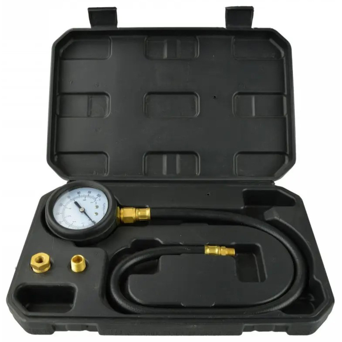 Манометр для вимірювання тиску масла призначений для контролю тиску в масляній системі автомобіля та іншої техніки. Інструмент дозволяє швидко та точно виконувати діагностику стану двигуна. Комплект оснащений набором адаптерів та гнучким шлангом, що забезпечує зручне підключення навіть у важкодоступних місцях.