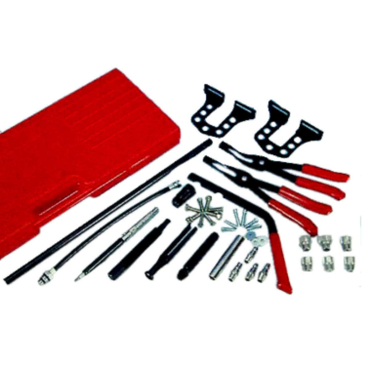 Розсухарювач клапанів універсальний призначений для обслуговування більшості багатоклапанних двигунів. Інструмент дозволяє виконувати зняття та встановлення сухарів клапанів без необхідності демонтажу головки блоку циліндрів. Підходить для двигунів із верхнім і нижнім розташуванням розподільного вала, що робить його універсальним рішенням для СТО та майстерень. Комплект постачається у кейсі та забезпечує зручність у роботі.