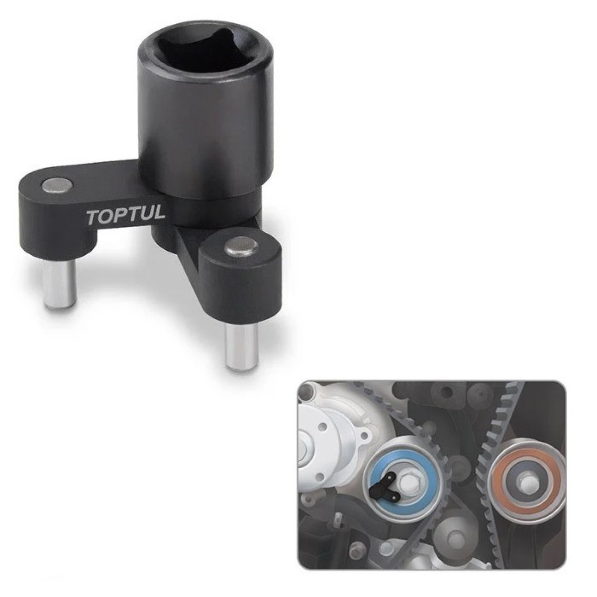 Ключ для регулювання ролика натягувача ременя універсальний призначений для налаштування натягу зубчастого ременя ГРМ на автомобілях різних марок. Інструмент забезпечує точне регулювання натяжного ролика під час обслуговування або заміни ременя. Компактна конструкція та можливість використання з приводом 1/4" дозволяють ефективно працювати в обмеженому просторі під капотом.