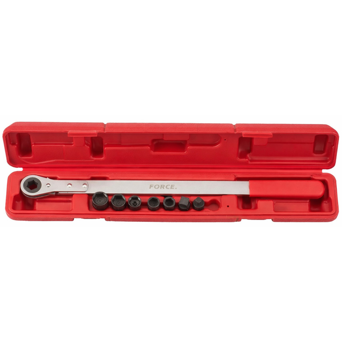 Пристосування для зняття натяжного ролика поліклинового ременя призначене для обслуговування ременів приводу та інших вузлів з ремінною передачею. Підходить для більшості автомобілів з пружинним ременем приводу та дозволяє ефективно працювати навіть у важкодоступних місцях. Інструмент оснащений тріскачкою, що забезпечує швидке та зручне позиціонування. Виготовлений із хром-ванадієвої сталі, має високу міцність, стійкість до зламів та тривалий термін експлуатації.