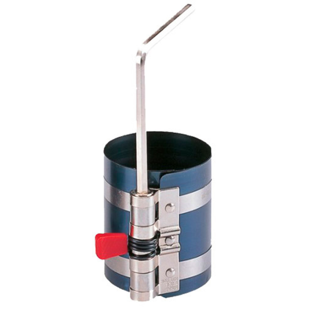 Оправа поршневих кілець ⌀57–125 мм, H 80 мм KING TONY 9AC125-32 призначена для стиснення поршневих кілець з подальшим встановленням поршня та шатуна в циліндр. Інструмент забезпечує рівномірне стиснення кілець і дозволяє безпечно виконувати монтаж без пошкодження деталей. Оснащений храповим механізмом, який регулюється за допомогою чотиригранного ключа, що дозволяє точно налаштувати діаметр обхвату. Одна сторона стрічки має насічки для запобігання зісковзуванню. Виготовлений із міцної пружинної сталі, що гарантує довговічність і стійкість до корозії.