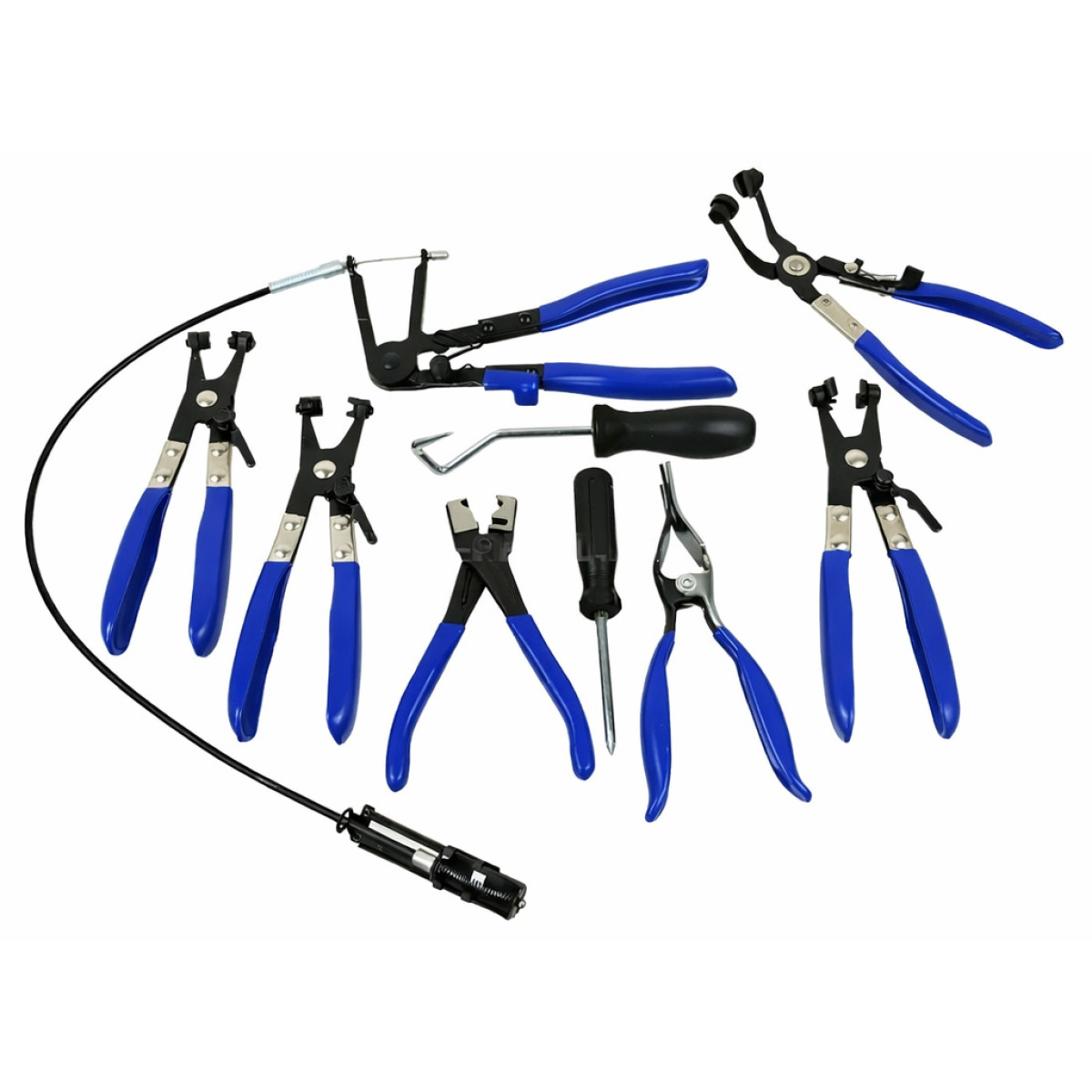 Набір знімачів для хомутів та патрубків універсальний призначений для професійного зняття та встановлення різних типів хомутів. Інструменти підходять для роботи з пружинними стрічковими та CLIC і CLIC-R хомутами. Дозволяють ефективно обслуговувати патрубки та шланги автомобіля. Спеціальна конструкція забезпечує роботу у важкодоступних місцях. Інструменти мають ергономічні рукоятки для зручного використання. Виготовлені з високоякісної сталі що забезпечує довговічність. Набір постачається у міцному кейсі для зберігання та транспортування.