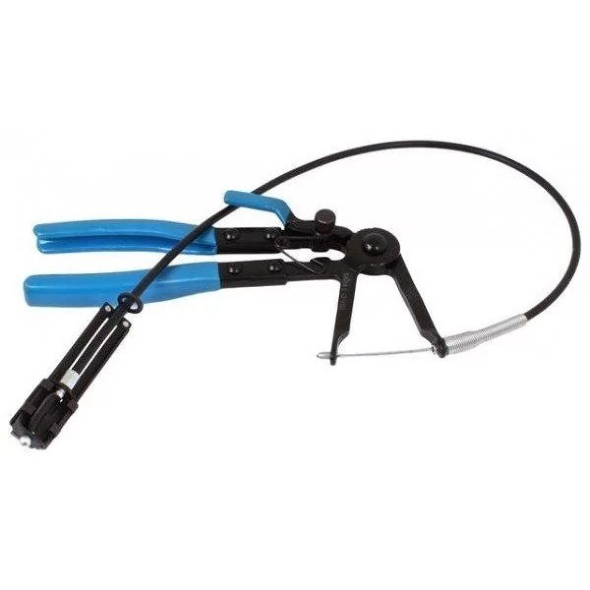 Кліщі призначені для зняття та встановлення пружинних самозажимних хомутів на паливних, масляних і водяних шлангах автомобіля. Інструмент широко використовується під час обслуговування систем охолодження, паливних магістралей та інших гнучких трубопроводів. Гнучкий трос довжиною 630 мм дозволяє працювати у важкодоступних місцях під різними кутами, де стандартні кліщі не можуть дістатися до хомута. Вбудований механізм фіксації утримує хомут у стиснутому положенні, звільняючи руки майстра для зручного виконання роботи. Міцна конструкція інструмента забезпечує довговічність та надійність під час професійного використання.