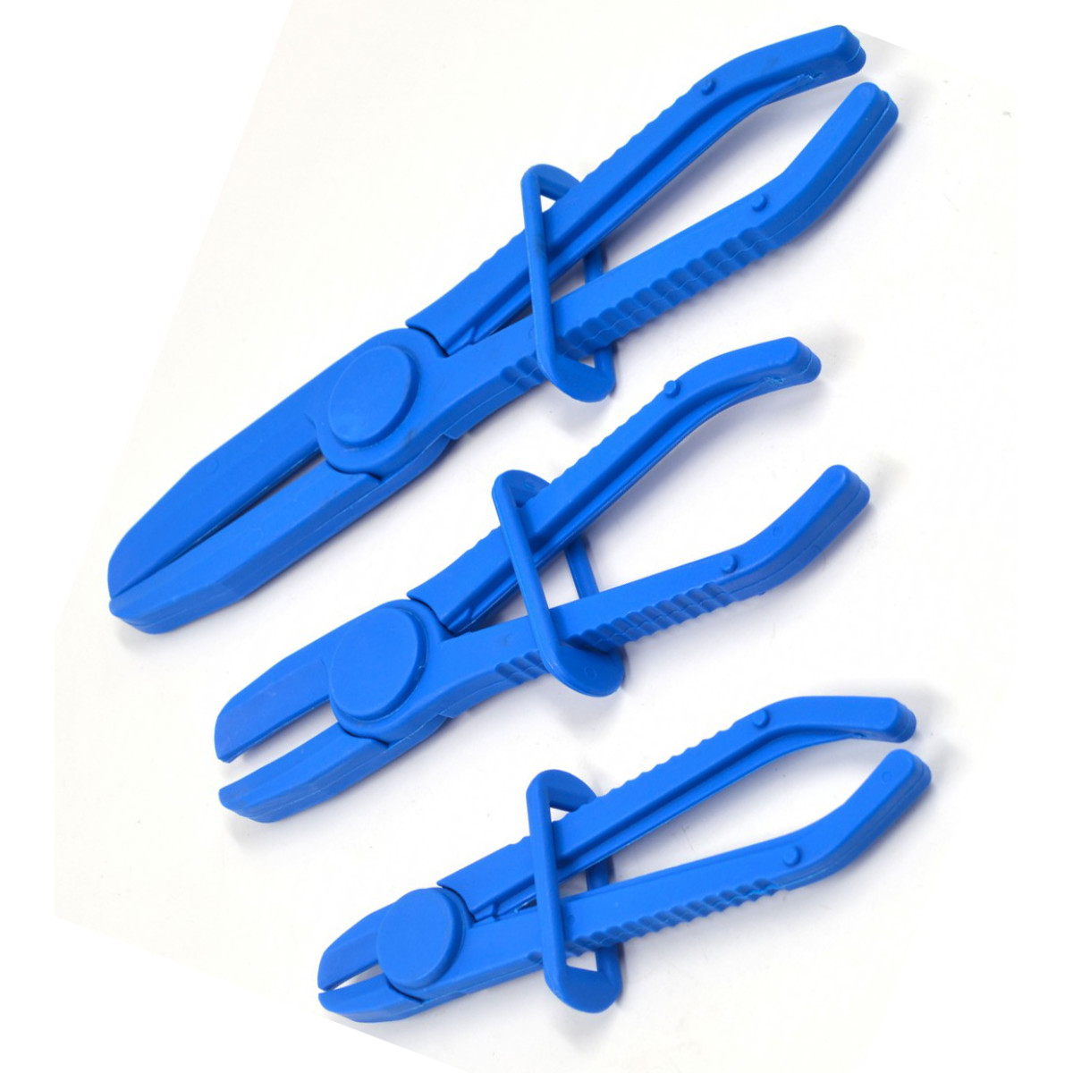 Набір призначений для тимчасового пережимання патрубків і гнучких шлангів під час проведення технічного обслуговування або ремонту автомобіля. Інструмент використовується для перекриття потоку рідини в паливних магістралях, системах охолодження та інших трубопроводах без необхідності повного зливу рідини. Затискачі виготовлені з міцного нейлону, який запобігає пошкодженню поверхні шлангів під час стиснення та забезпечує надійну фіксацію. У комплект входять три інструменти різної довжини, що дозволяє працювати зі шлангами різного діаметра. Набір підходить для використання в автосервісах, майстернях та під час домашнього ремонту техніки.
