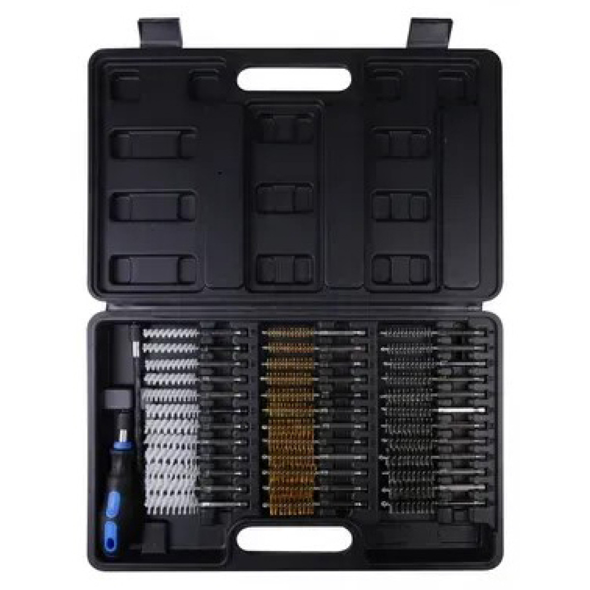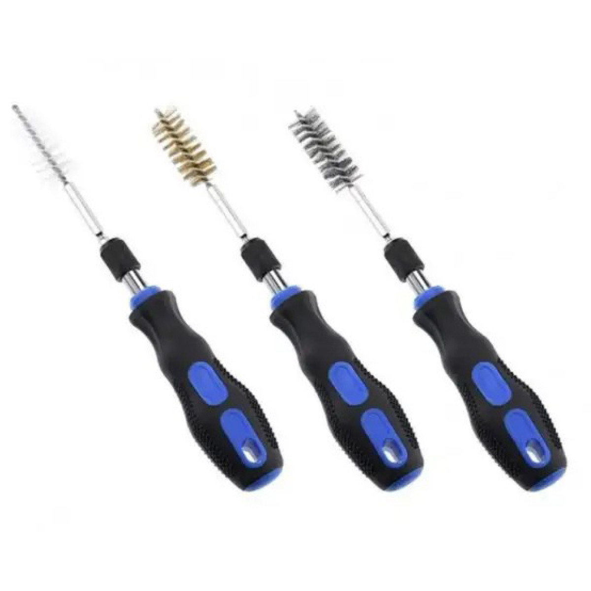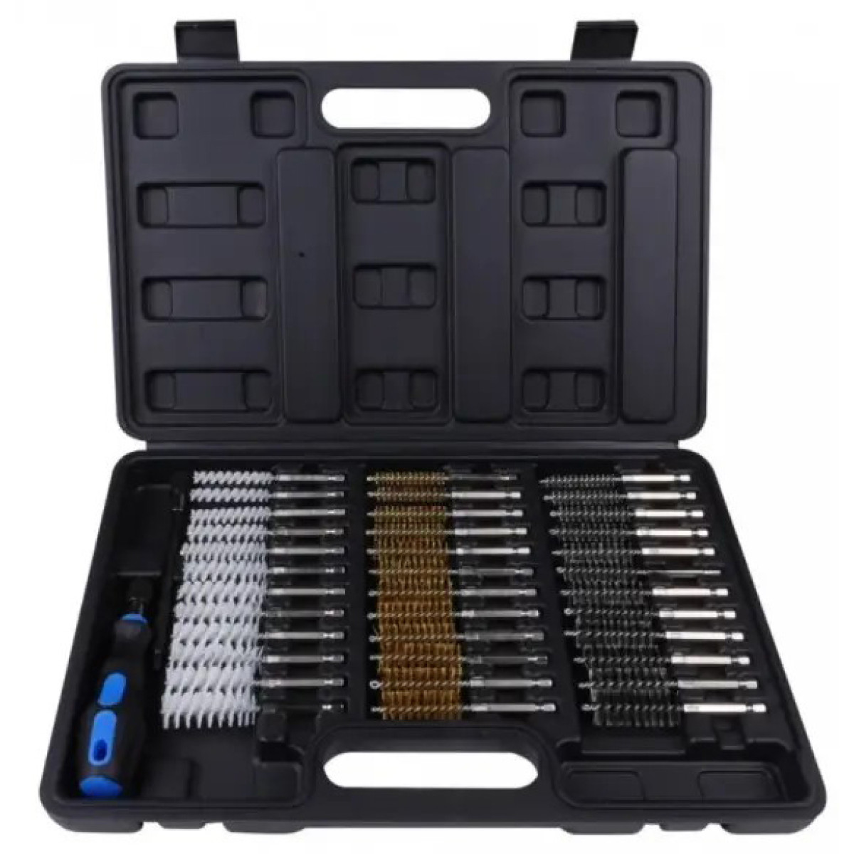 Набір зачисних щіток 38 шт ідеально підходить для очищення посадкових місць форсунок, свічок, циліндрів, патрубків, труб та інших елементів, що потребують очищення. Призначений для видалення бруду та стружки з просвердлених отворів, труб і важкодоступних місць блоку двигуна. У наборі по 12 щіток з нержавіючої сталі, латуні та нейлону з діаметрами 8–19 мм під посадковий квадрат 1/4”. Передбачена можливість використання щіток із прикріпленою ручкою або з електроінструментом. У комплект входить ручка з адаптером 1/4” та подовжувач 150 мм для зручної роботи.