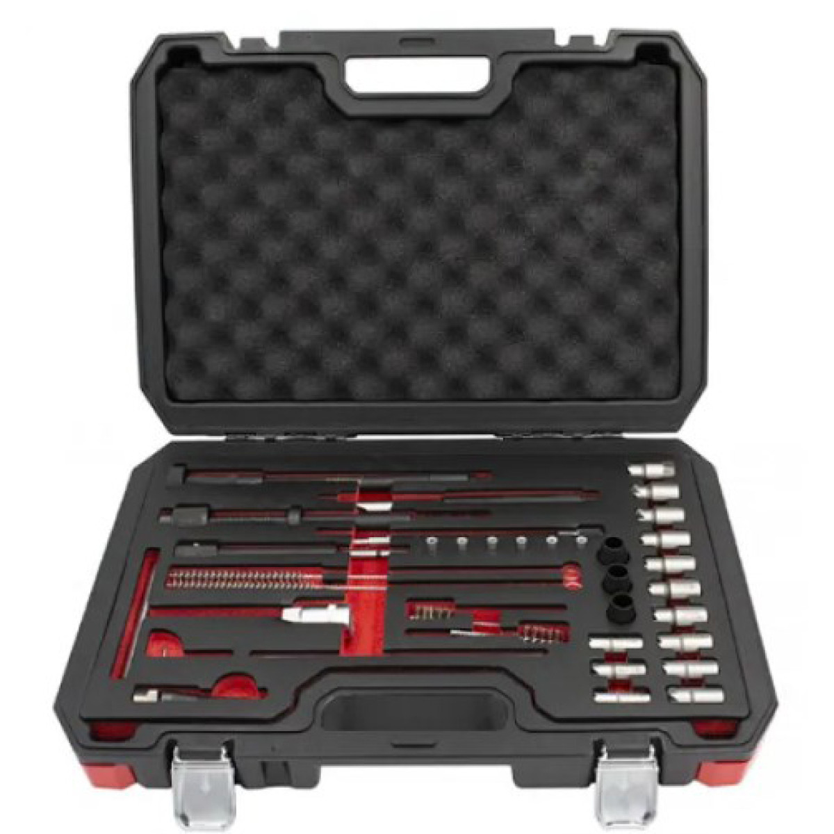 Підходить для обслуговування сучасних дизельних двигунів. Інструменти виготовлені з міцних матеріалів та розраховані на інтенсивне використання в умовах СТО та майстерень
