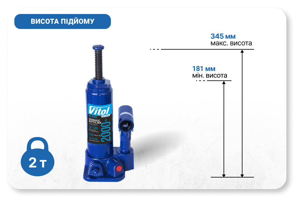 Домкрат пляшковий 2т 181-345 мм в кейсі VITOL T90204S/DB-02006K - DB-02006K