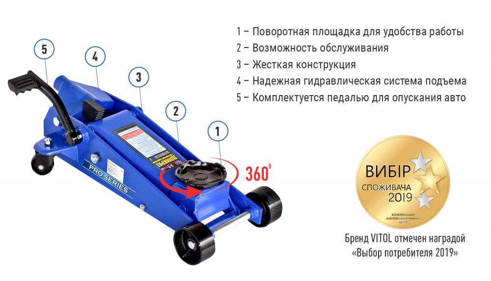 Домкрат підкатний професійний 3,0т з педаллю 145-500 мм (T83502) UNITRAUM UN83502 - UN83502