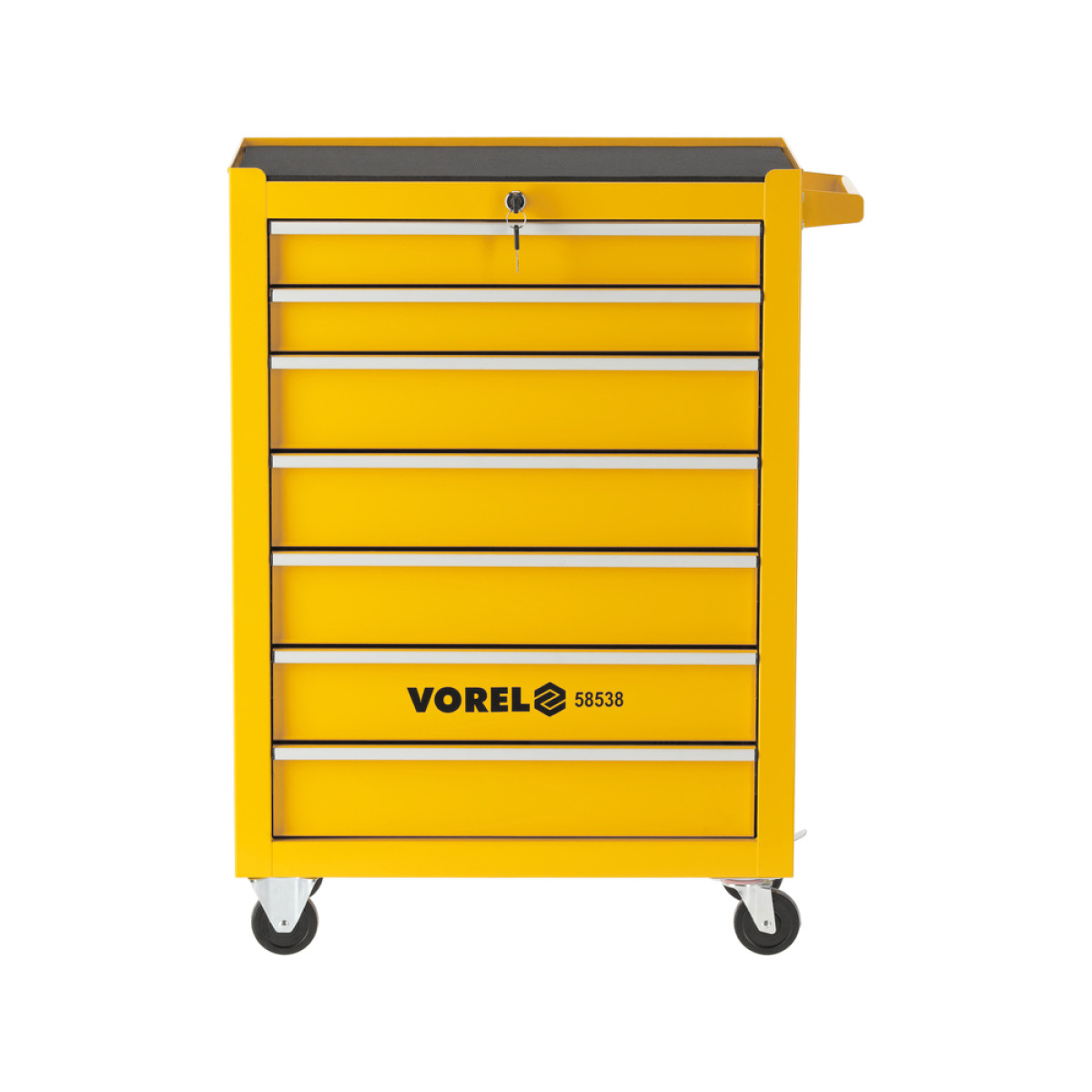 шафа для інструментів VOREL 58538, візок для інструментів, металева шафа VOREL, сервісний візок на колесах, інструментальна тумба, майстернева шафа, шафа з шухлядами, візок з замком