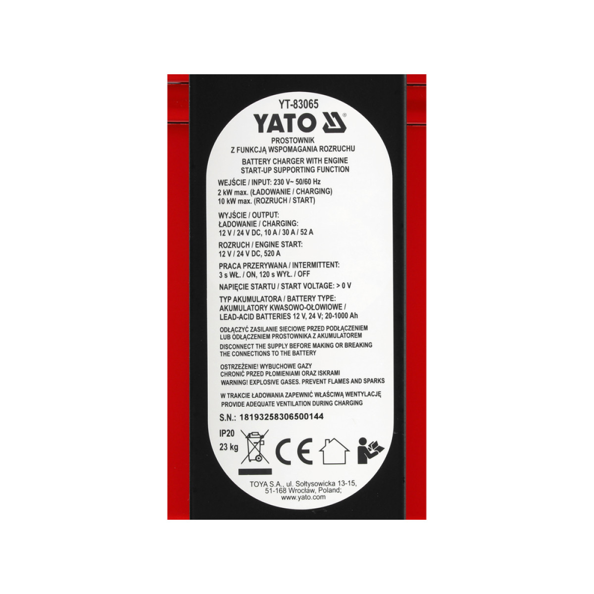 Пуско-зарядний пристрій YATO 12/24 В, 10/30/52 А, старт 520 А (YT-83065) - YT-83065