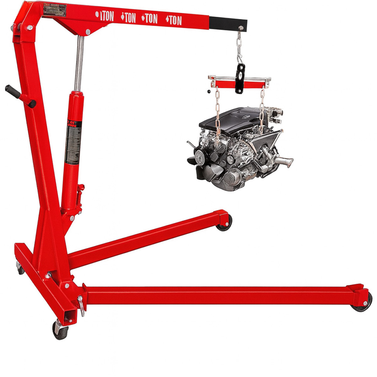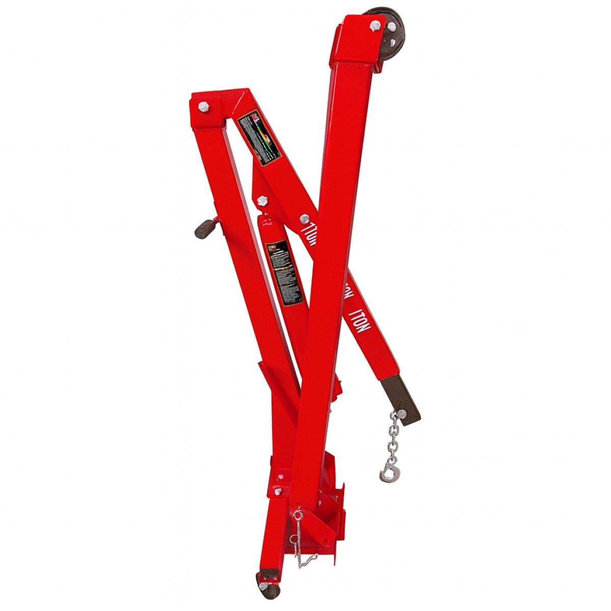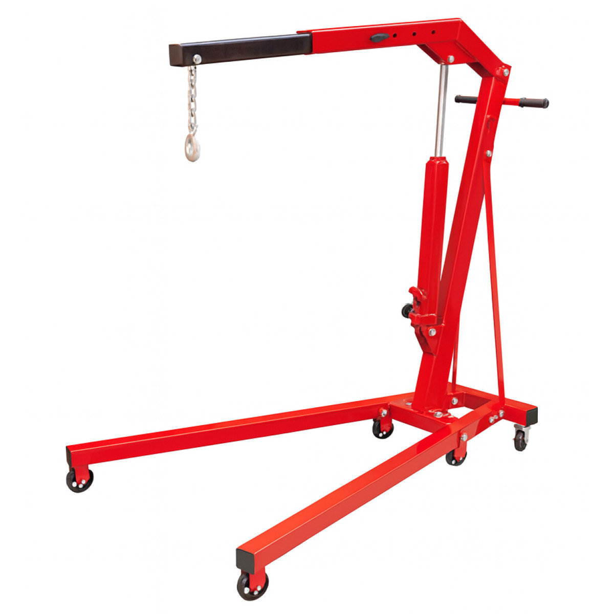 Гідравлічний кран TORIN Big Red T31002 - складний гаражний кран з максимальною вантажопідйомністю 1,0 тонна, масою 75 кг. Призначені для підйому та переміщення вантажів при виконанні вантажно-розвантажувальних робіт у гаражах, складських приміщеннях, ремонтних цехах тощо. Телескопічна стріла, що фіксується у 4 позиціях, забезпечує висоту підйому до 2,382 метрів. Оснащені гідроциліндром із вбудованим насосом із ручним приводом.