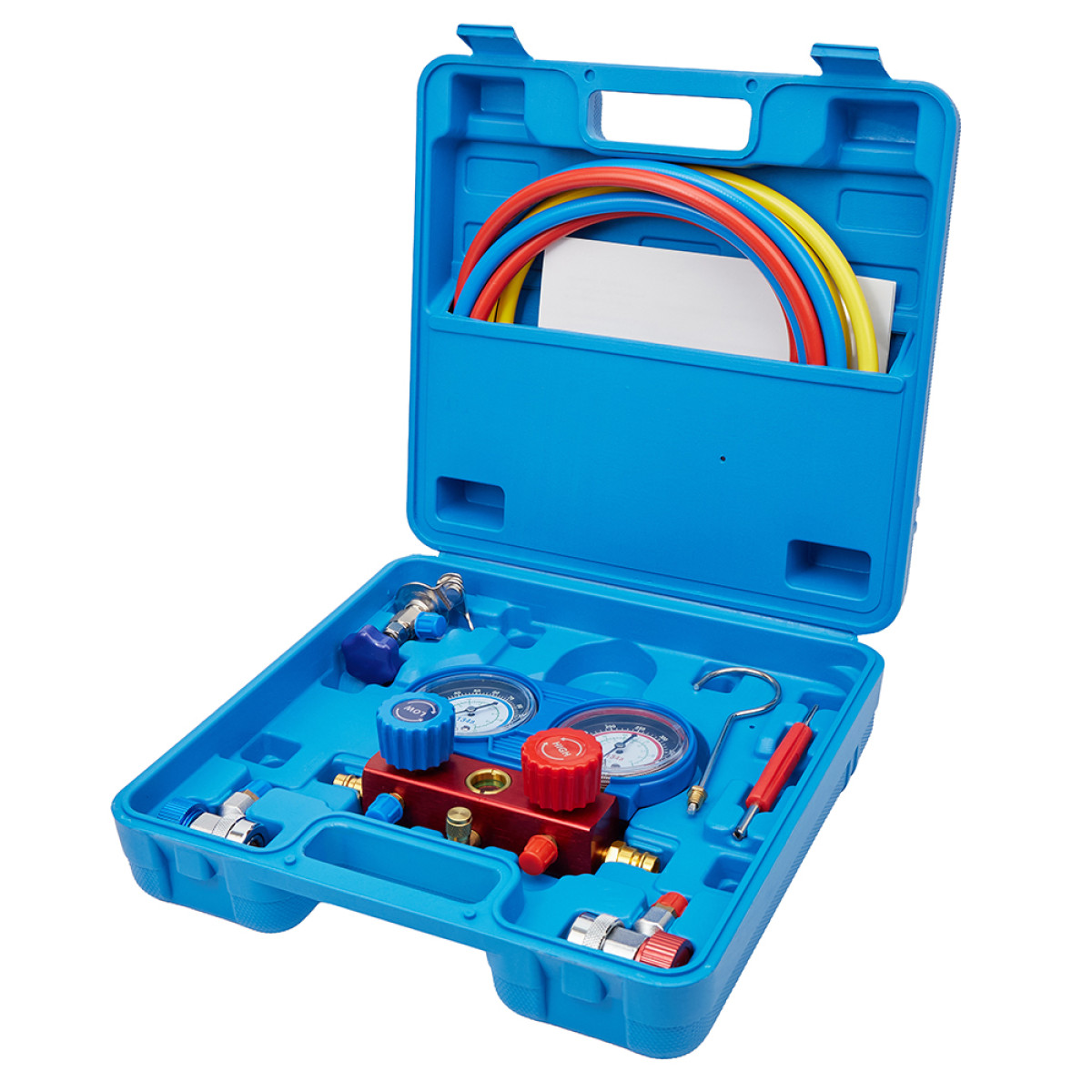 Професійний манометричний колектор Alloid ZK-1011 призначений для комплексного обслуговування автомобільних кондиціонерів і холодильних систем. Дозволяє виконувати заправку, відкачування холодоагенту, вакуумування системи та контроль робочого тиску.