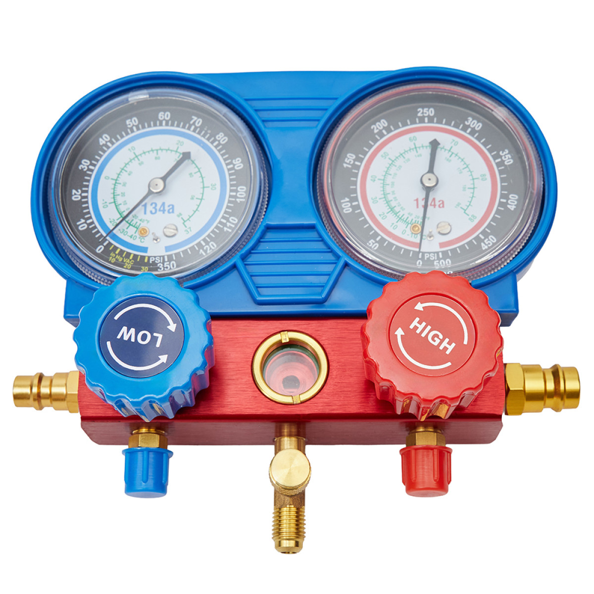 Оснащений двома манометрами з високою точністю вимірювань і оглядовим склом для контролю потоку холодоагенту, що забезпечує зручність і безпеку під час роботи.