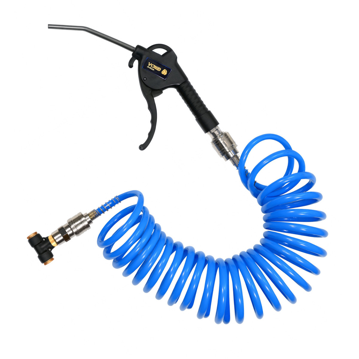 Практичний набір для продувки стисненим повітрям. Ідеально підходить для очищення кабіни вантажних автомобілів, деталей і важкодоступних місць. Легкий у використанні, забезпечує ефективність і надійність у роботі.