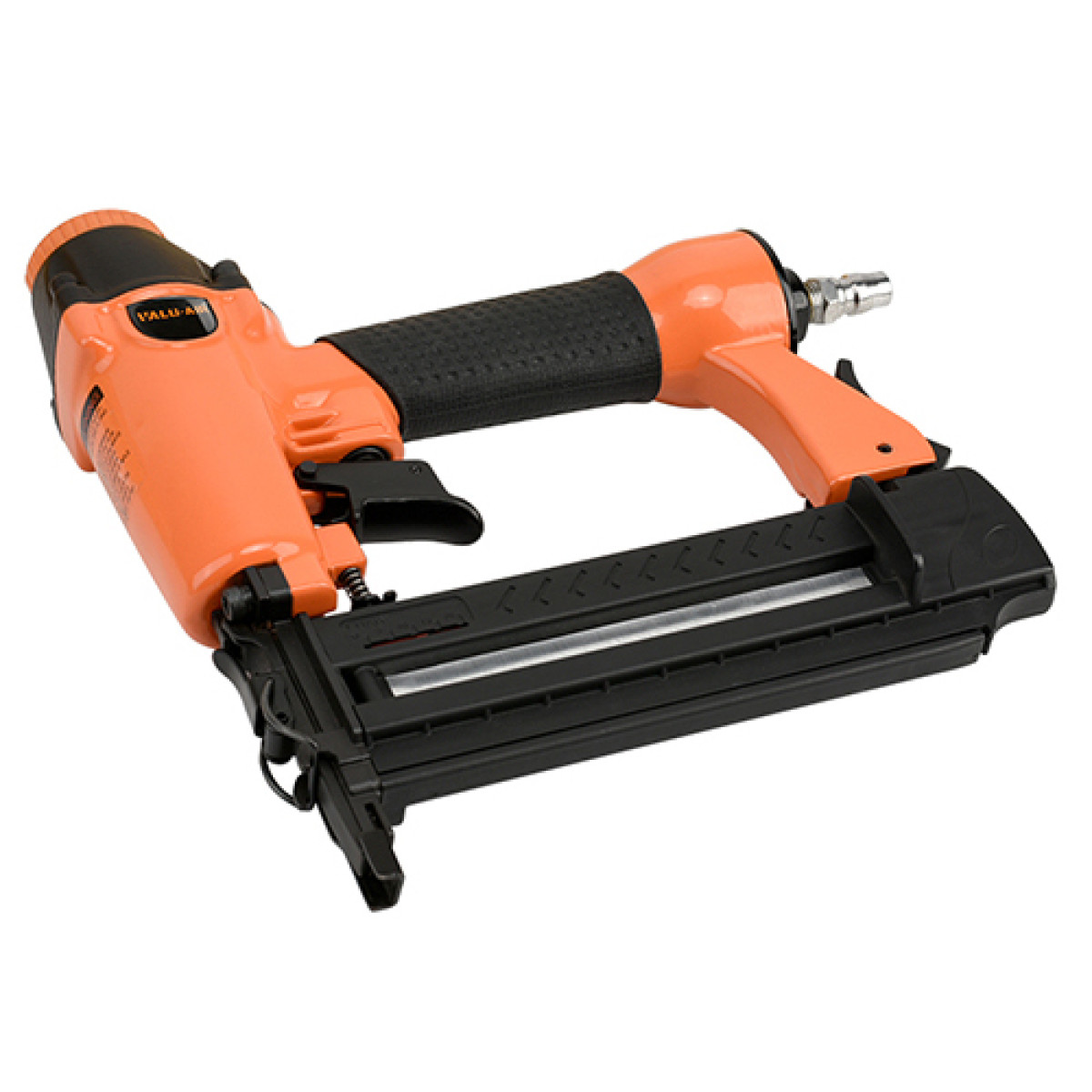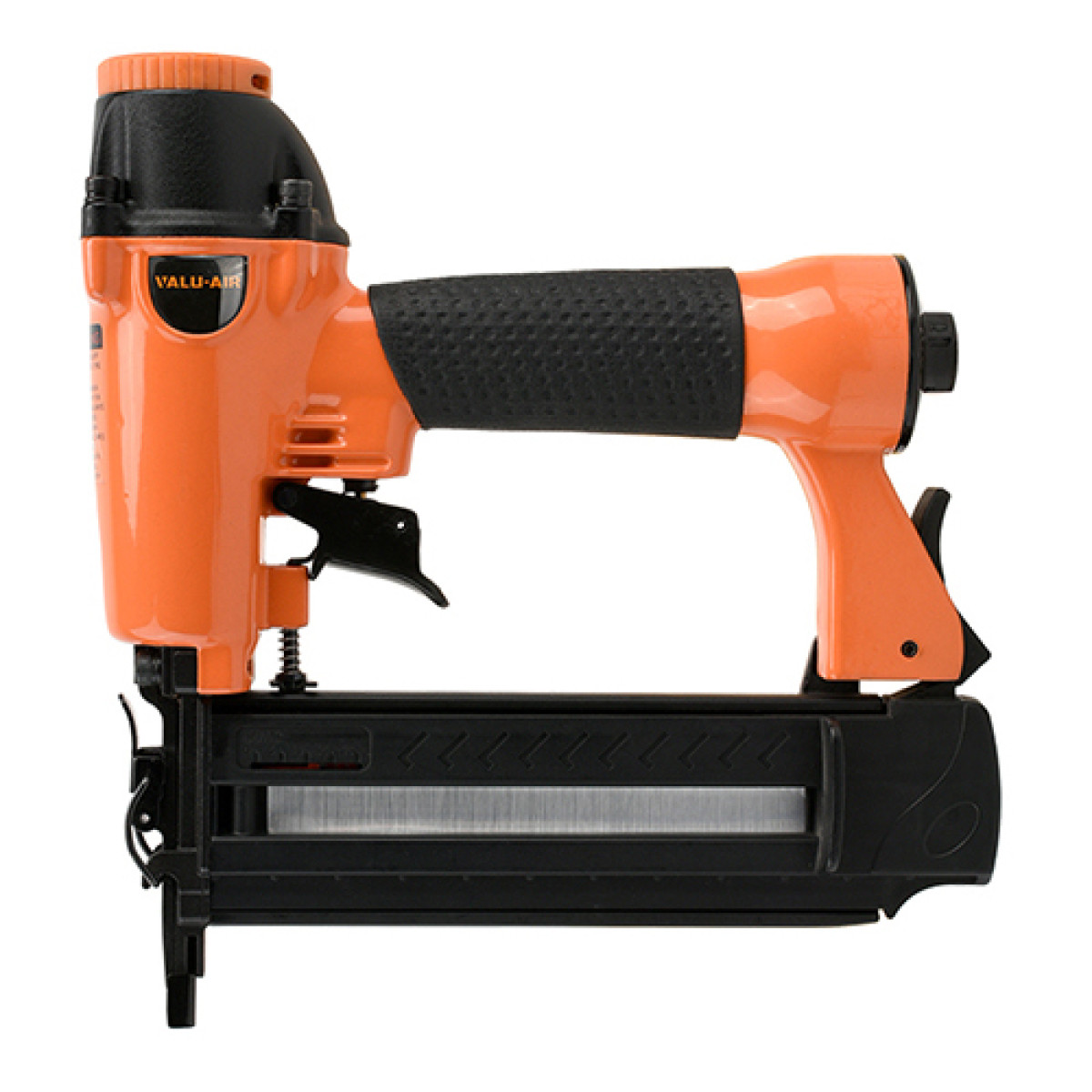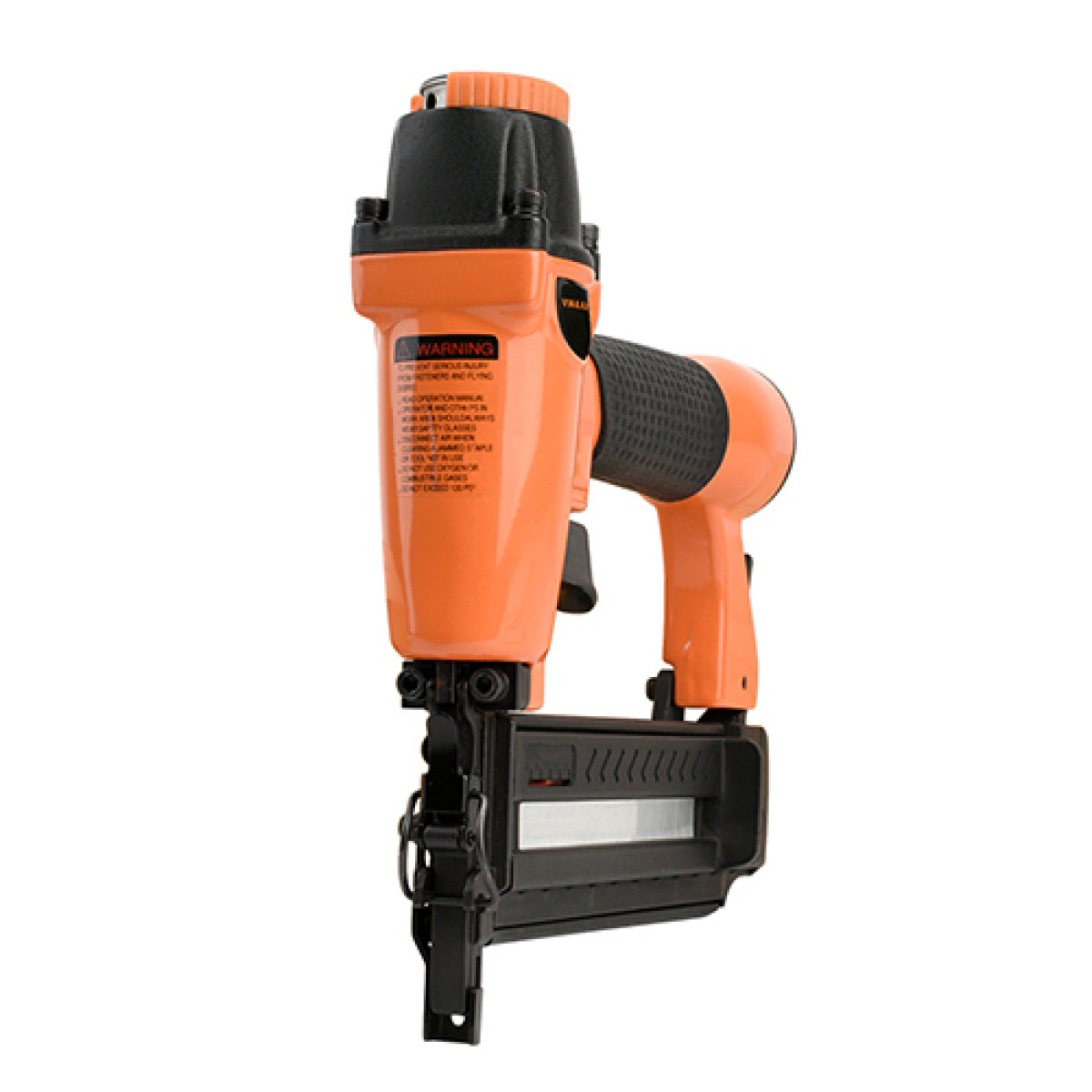 Пневматичний степлер призначений для професійних меблевих і рамкових робіт. Інструмент працює з цвяхами типорозміру довжиною від . Завдяки місткому магазину на та живленню від стисненого повітря забезпечує високу швидкість і надійність кріплення. Степлер має міцний корпус, обгумовану рукоятку для зручності роботи та комплектується запасним бойком, що подовжує термін експлуатації інструмента.