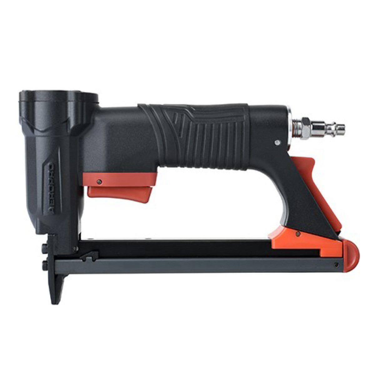 Пневматичний степлер призначений для професійних меблевих і рамкових робіт. Інструмент працює зі скобами типорозміру висотою від , що дозволяє виконувати широкий спектр завдань. Корпус виготовлений із міцних матеріалів, а обгумована рукоятка забезпечує комфорт при тривалому використанні. У комплекті передбачено запасний бойок, що продовжує термін служби інструмента. Степлер живиться від стисненого повітря й оптимально працює при тиску .