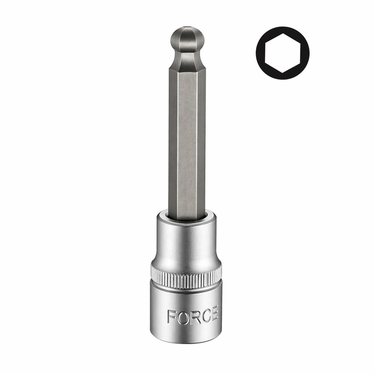 Головка-біта FORCE 33510008 призначена для роботи з шестигранним кріпленням (HEX). Оснащена шаровим наконечником (плаваючим), що дозволяє працювати під кутом та значно полегшує доступ до кріплень у складних умовах.