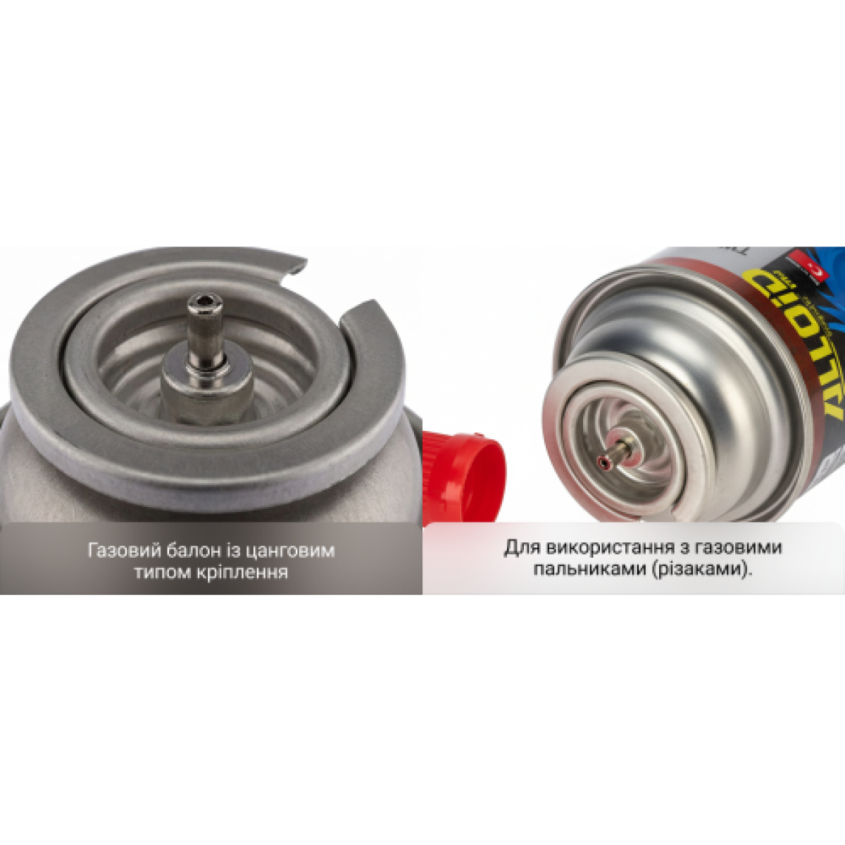 газовий балон ALLOID PRO 220 г, газовий картридж Alloid, кемпінговий газ 220 г, газ для пальника, туристичний газовий балон, всесезонний газ купити