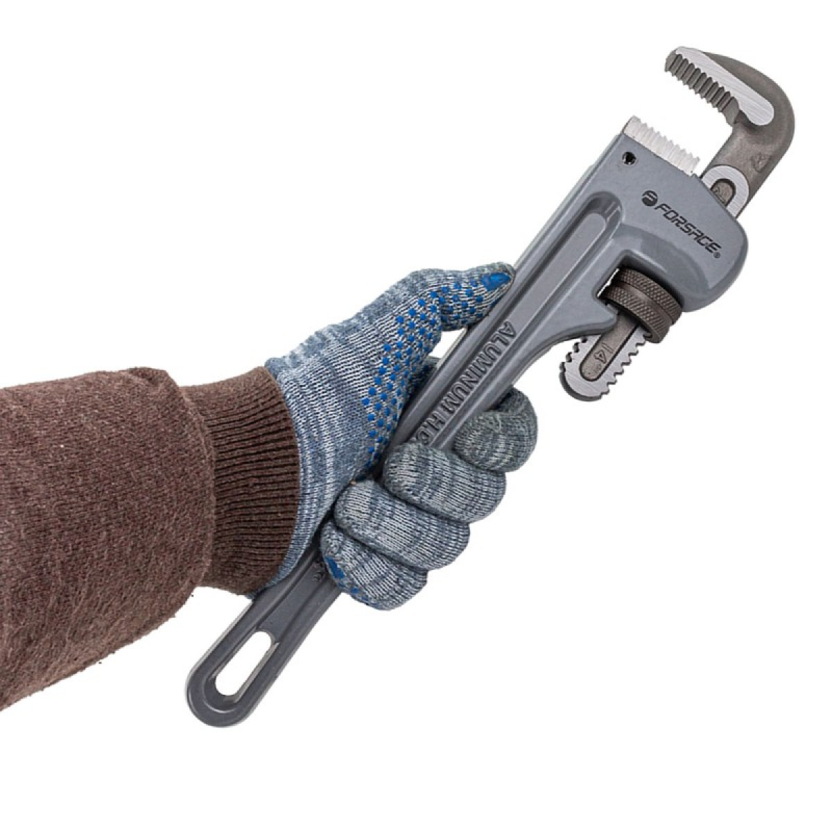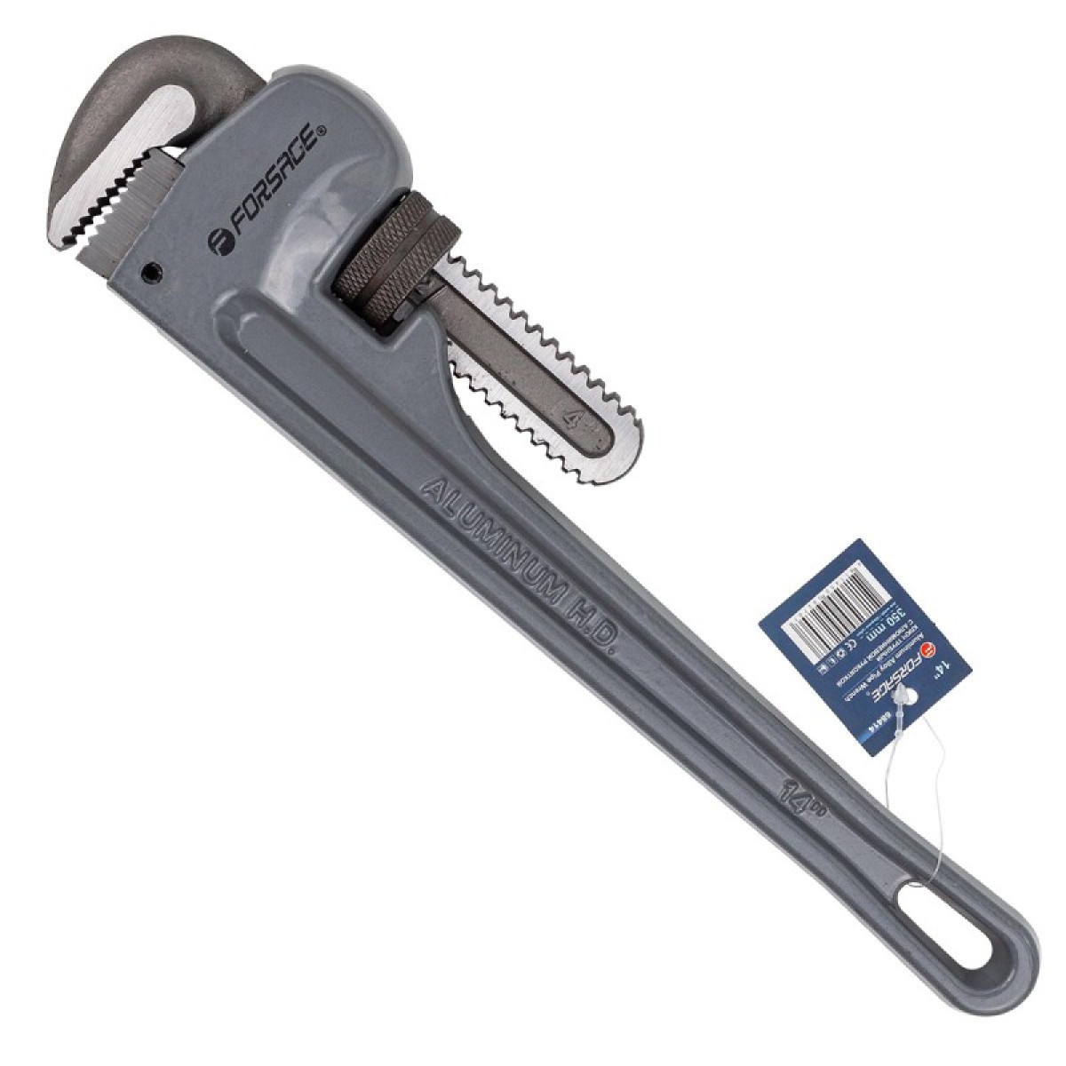ключ трубний розвідний FRSG F-68414, алюмінієвий ключ 14", трубний ключ 350 мм, сантехнічний ключ FRSG, легкий розвідний ключ, міцний алюмінієвий трубний ключ, інструмент для монтажу труб