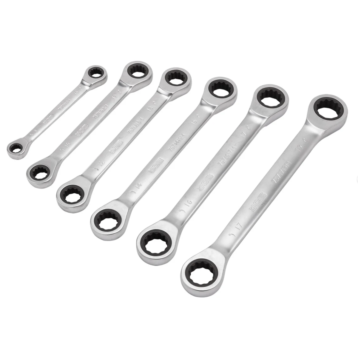 Набір накидних ключів з тріскачкою JCB Tools JCB-50621M включає 6 якісних інструментів, виготовлених з хромованадієвої сталі (Cr-V). Завдяки храповому механізму ключі забезпечують зручність роботи у важкодоступних місцях, підвищуючи швидкість та комфорт під час монтажу й демонтажу кріплень. Комплект ідеально підійде як для професійного використання в майстернях і на СТО, так і для домашніх ремонтів.