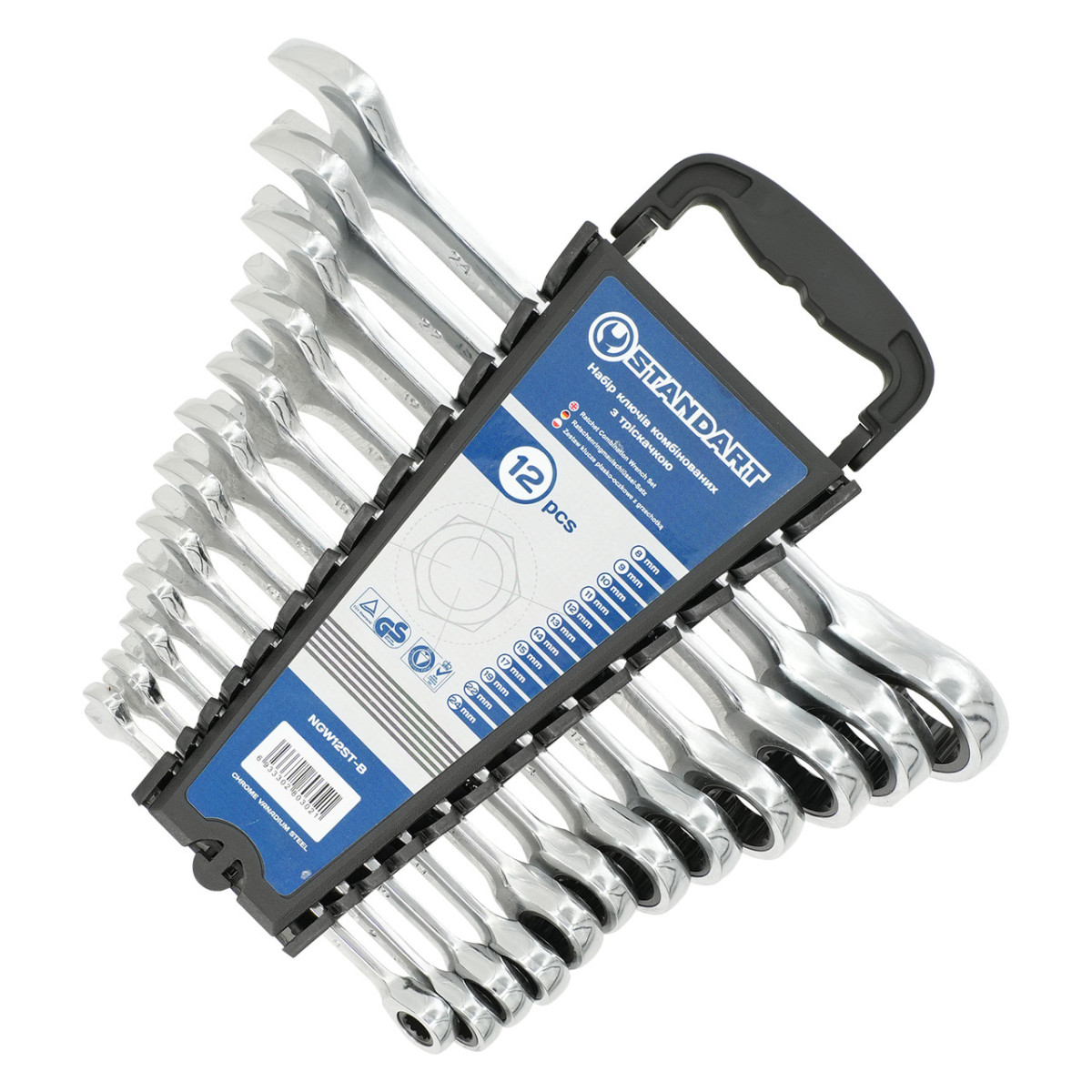 Набір ключів комбінованих з тріскачкою 8-24 мм, 12 од. СТАНДАРТ NGW12ST-B