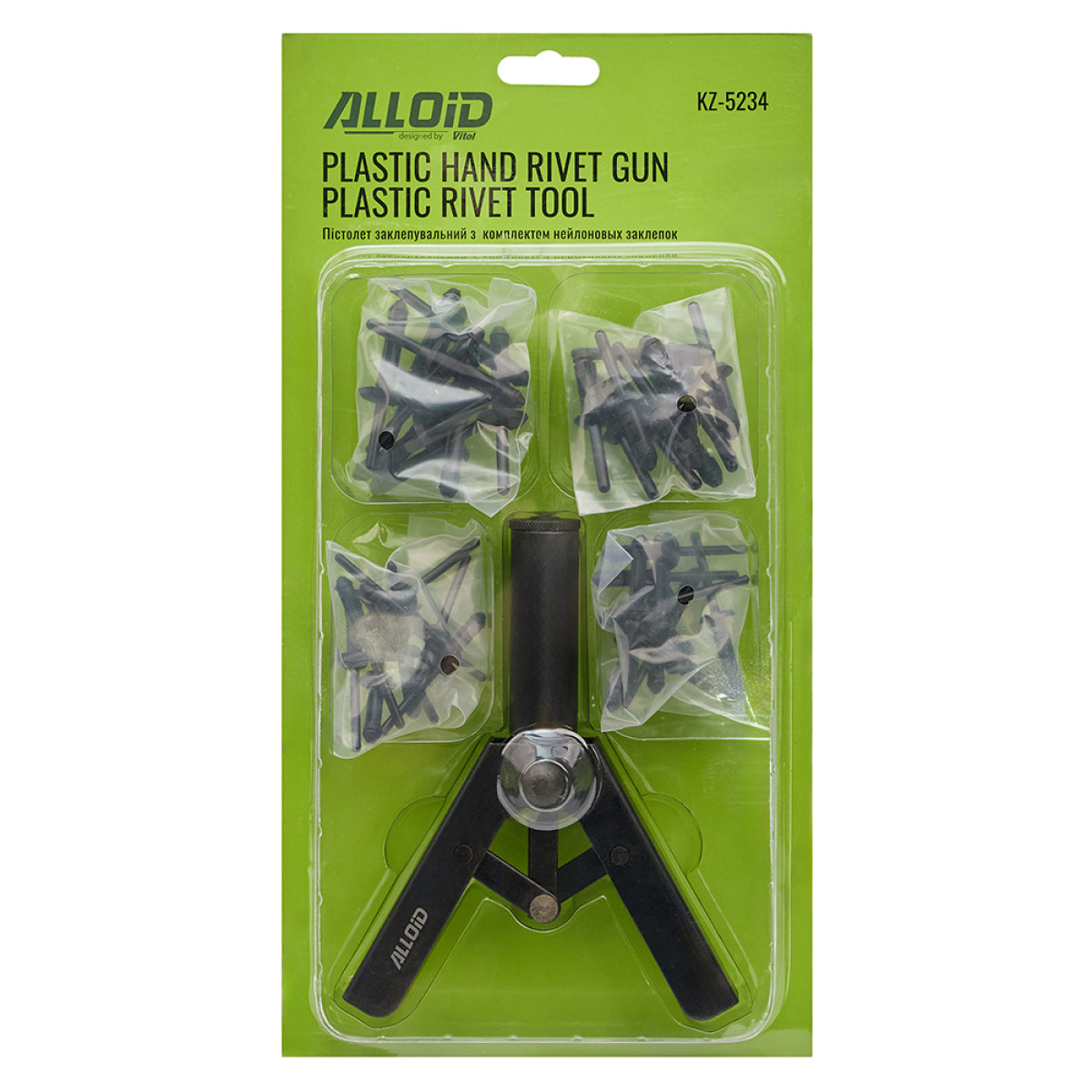 заклепочник для пластика, ALLOID KZ-5234, набір заклепок авто, інструмент для кліпс