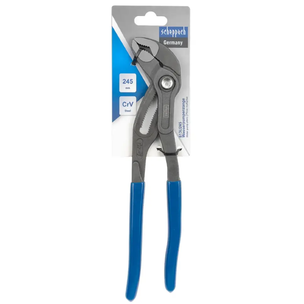 пасатижі Scheppach, SCH-613U245, переставні пасатижі 10", пасатижі 245 мм, сантехнічні кліщі, переставні кліщі Scheppach, пасатижі з кнопковим механізмом, інструмент для труб, кліщі для фітингів