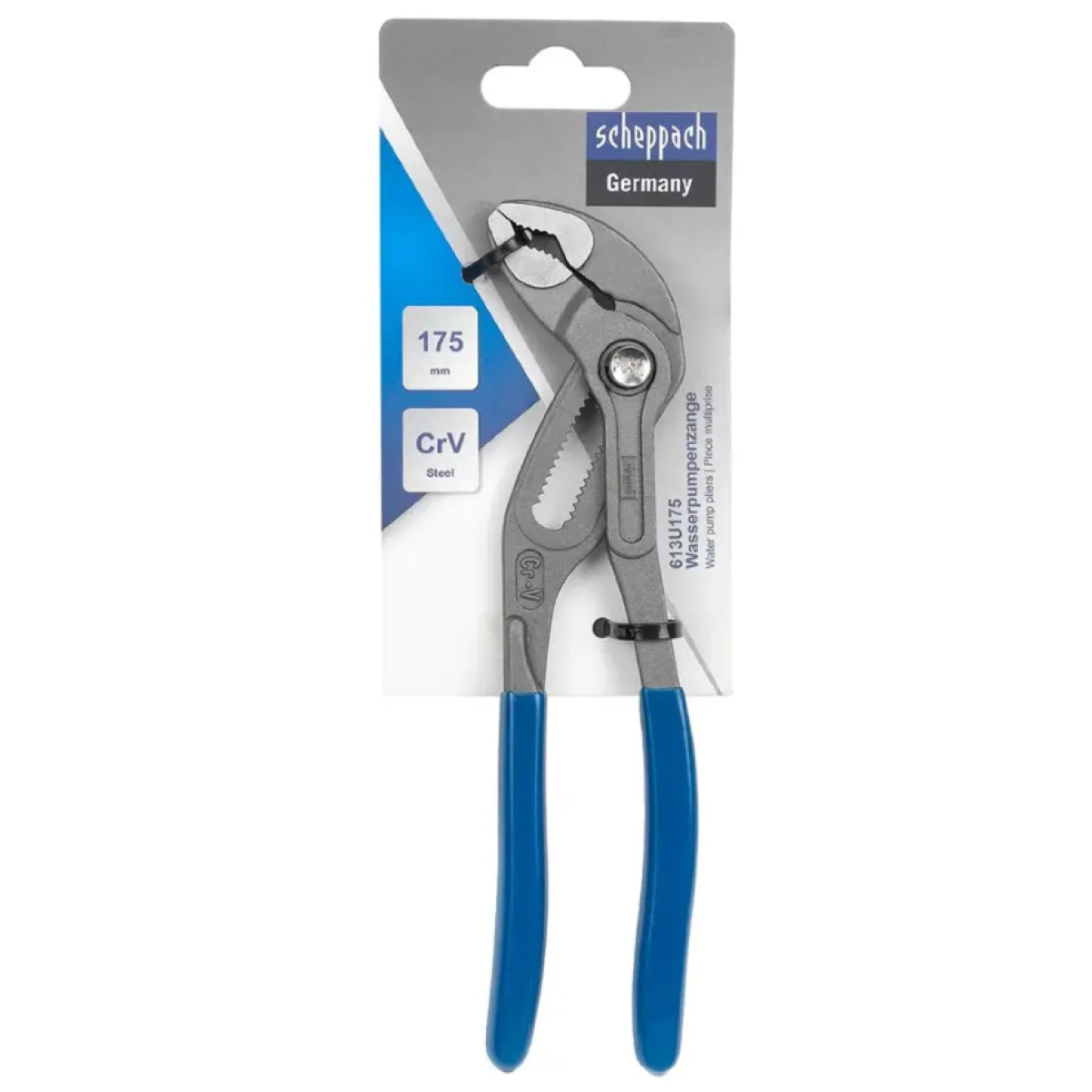 пасатижі Scheppach, SCH-613U175, переставні пасатижі 175 мм, кліщі 7 дюймів, сантехнічні кліщі, переставні кліщі Scheppach, пасатижі з кнопковим механізмом, інструмент для фітингів, кліщі для труб