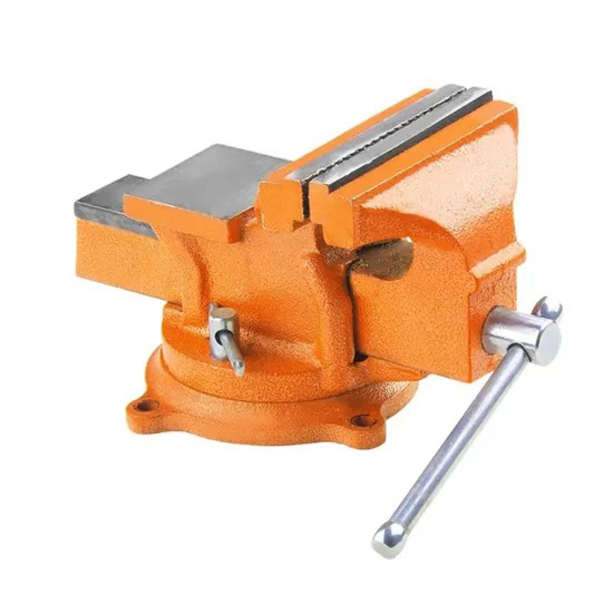Модель оснащена поворотною основою, що дозволяє обертати тиски навколо осі та фіксувати їх у потрібному положенні.