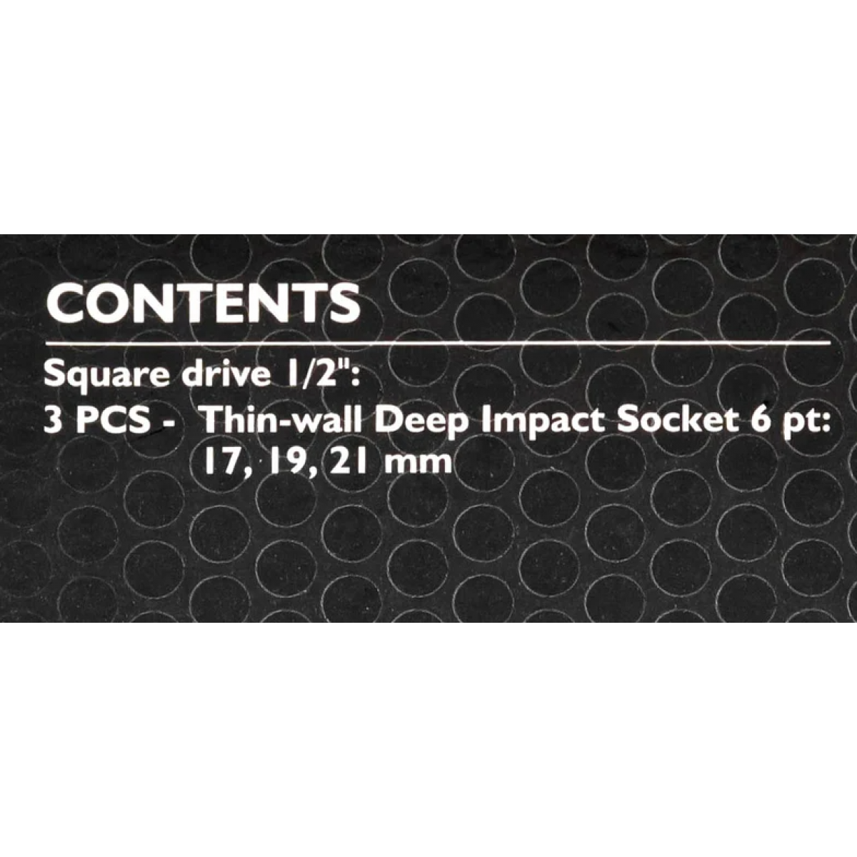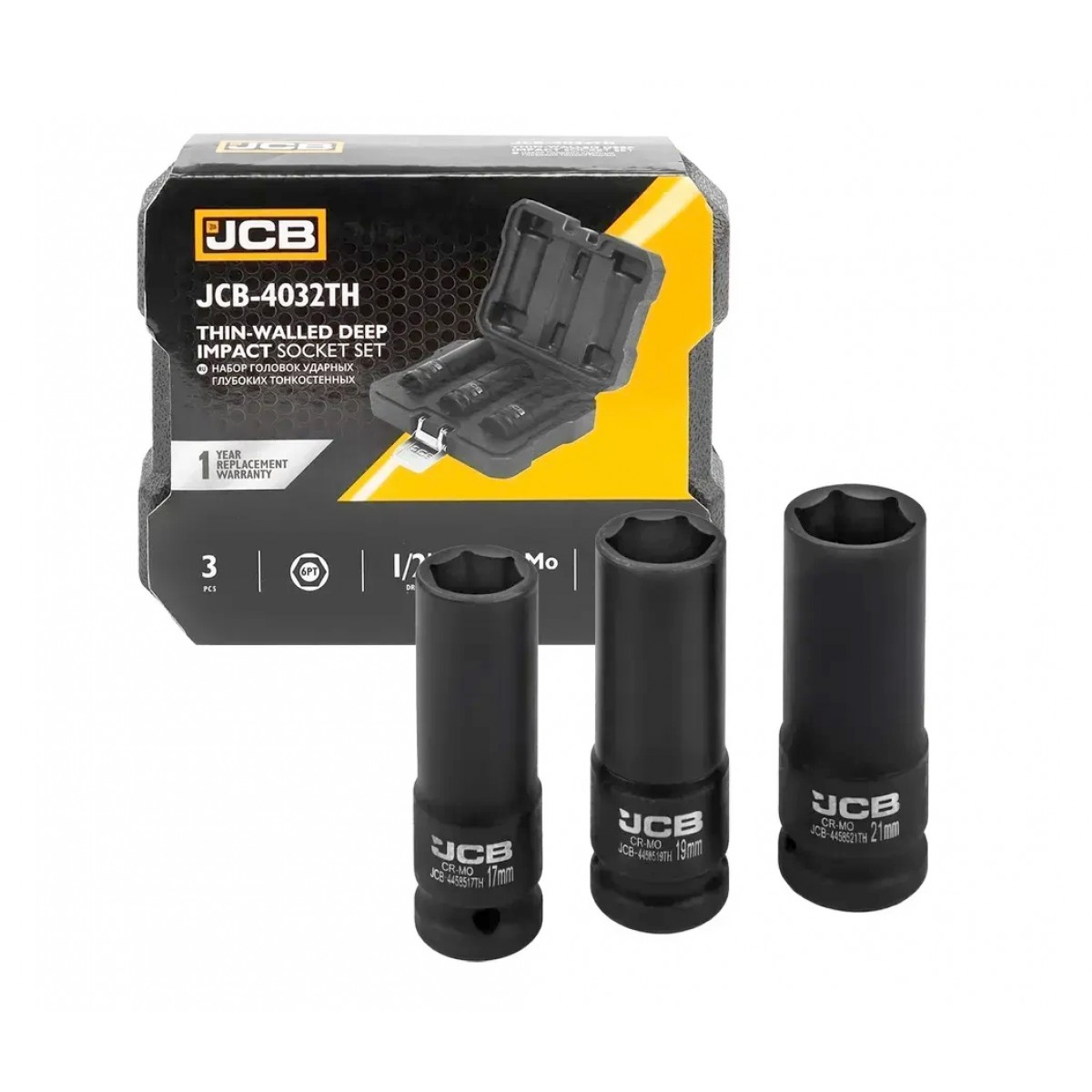 Набір головок глибоких ударних тонкостінних 3 од. 1/2" (6-гр.) 17,19, 21 мм JCB Tools JCB-4032TH - 60979