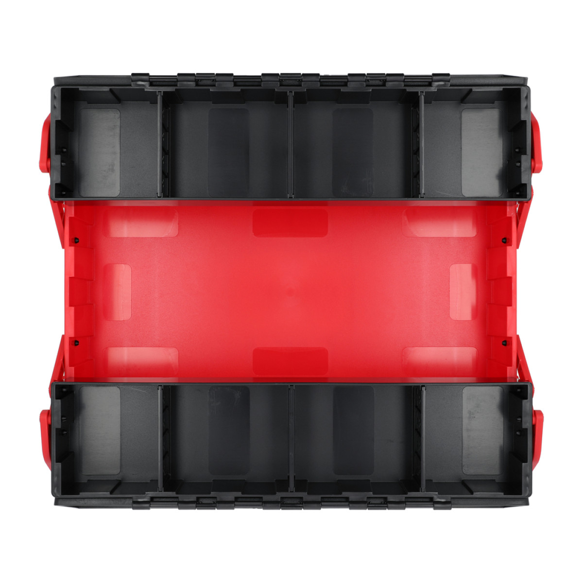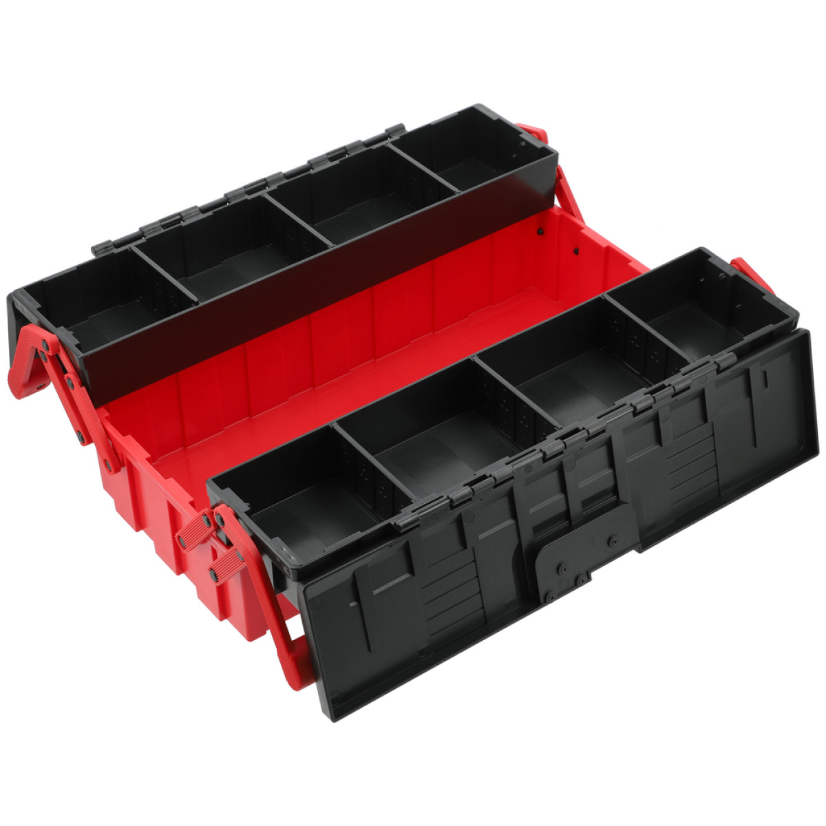 Конструкція з (велике нижнє відділення та два бічні розсувні відділення з перегородками) дозволяє швидко організувати інструмент і мати миттєвий доступ до необхідних елементів. Завдяки вантажопідйомності до ящик підходить як для побутового, так і для професійного використання.