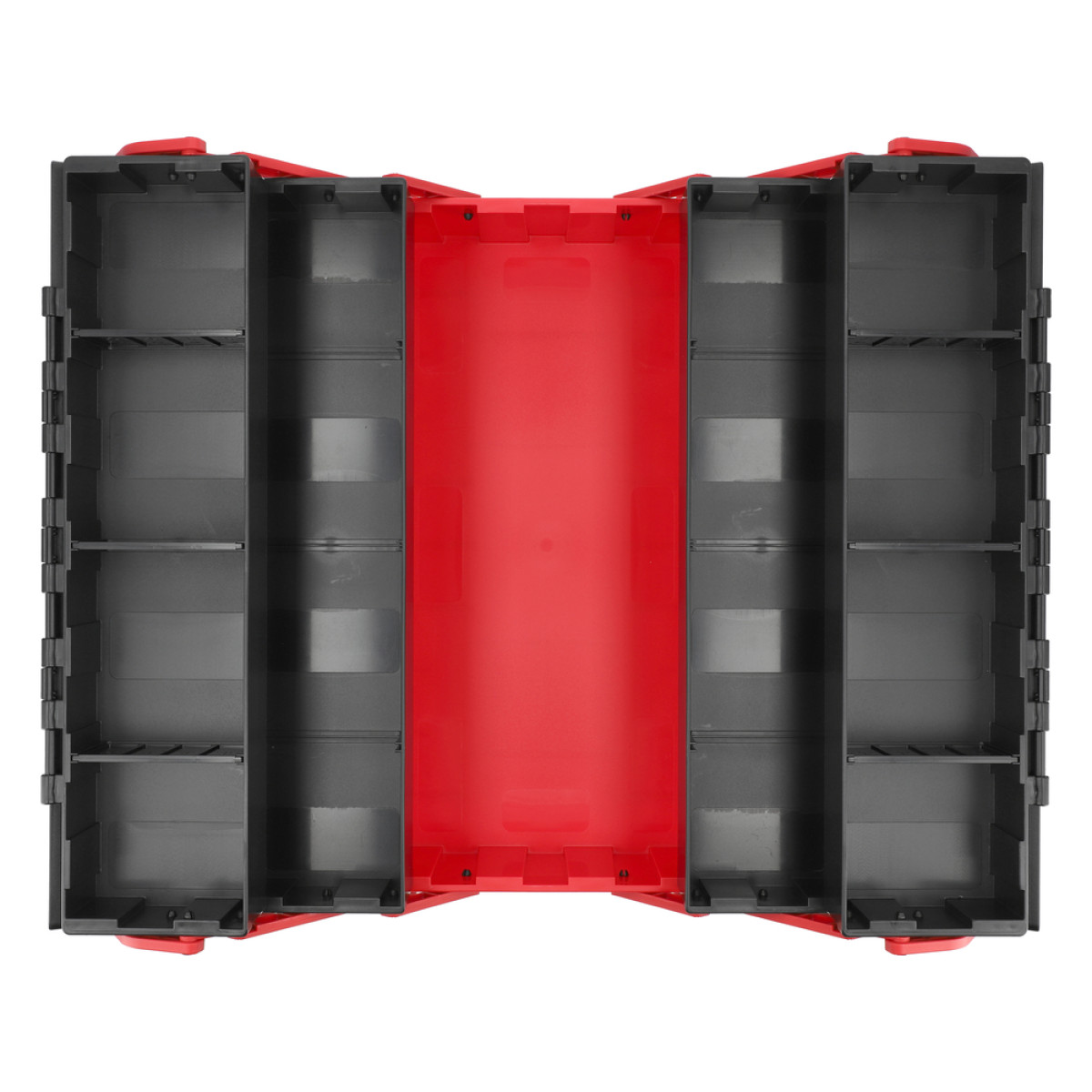 Розсувний ящик для інструменту призначений для зручного зберігання, сортування та транспортування ручного інструменту, кріплення й аксесуарів. Виготовлений із міцних матеріалів , що забезпечують високу ударостійкість і надійний захист вмісту.