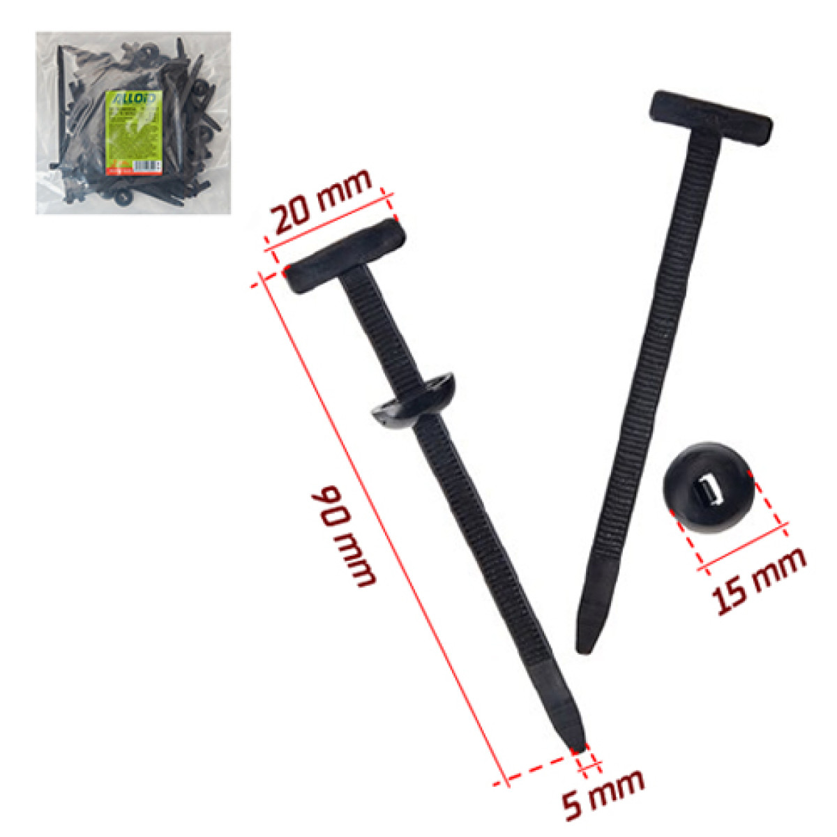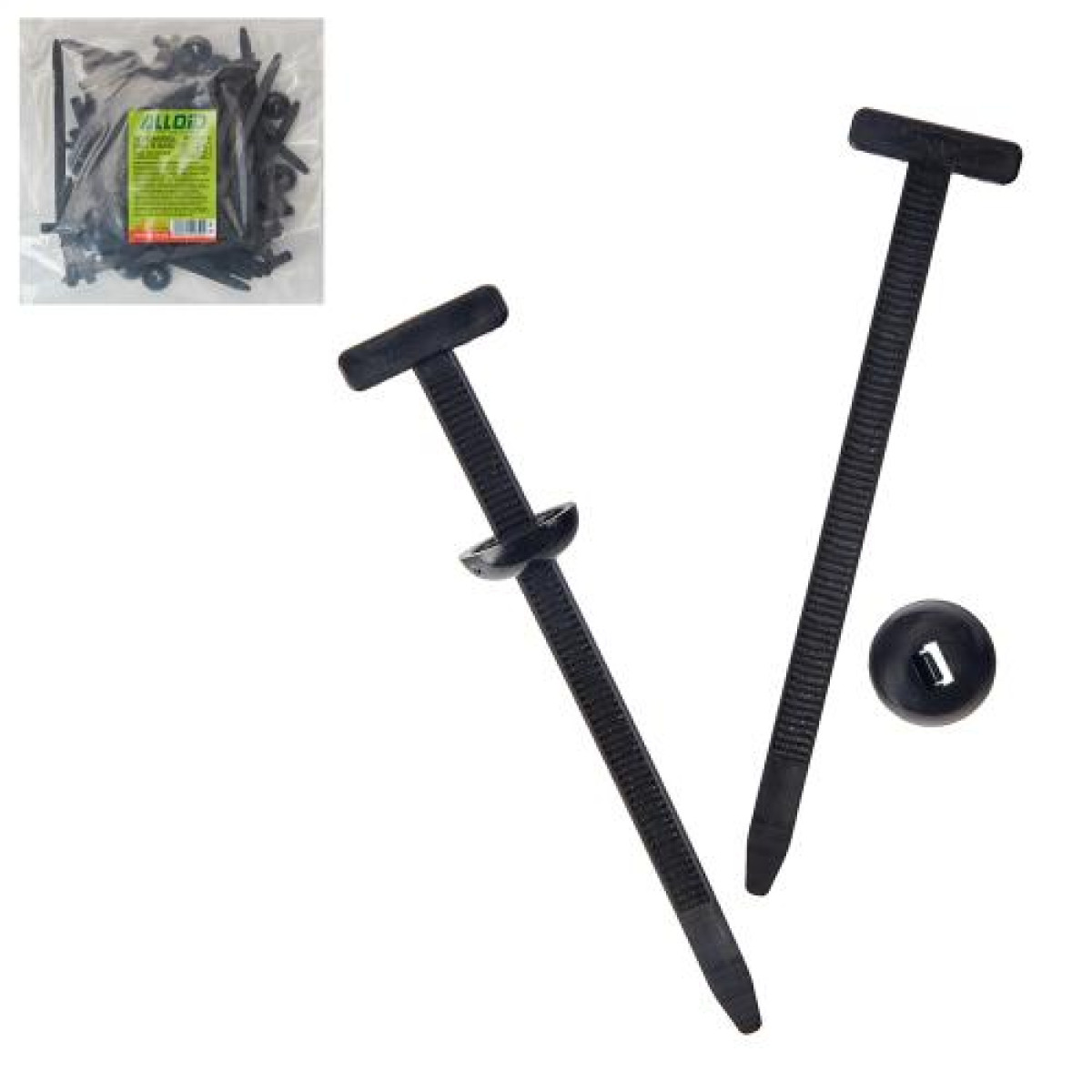 хомут пластиковий Alloid 20×90, стяжка з кріпленням, кабельний хомут Alloid, нейлоновий хомут чорний, хомут монтажний Т-подібний, організація кабелів і проводів, набір хомутів 50 шт