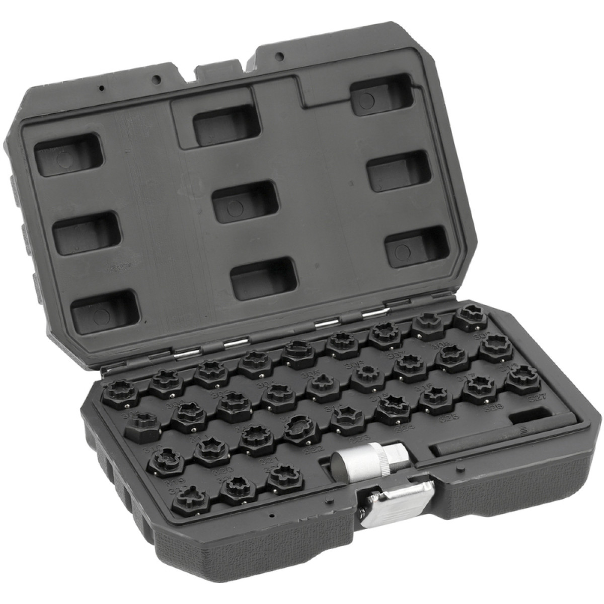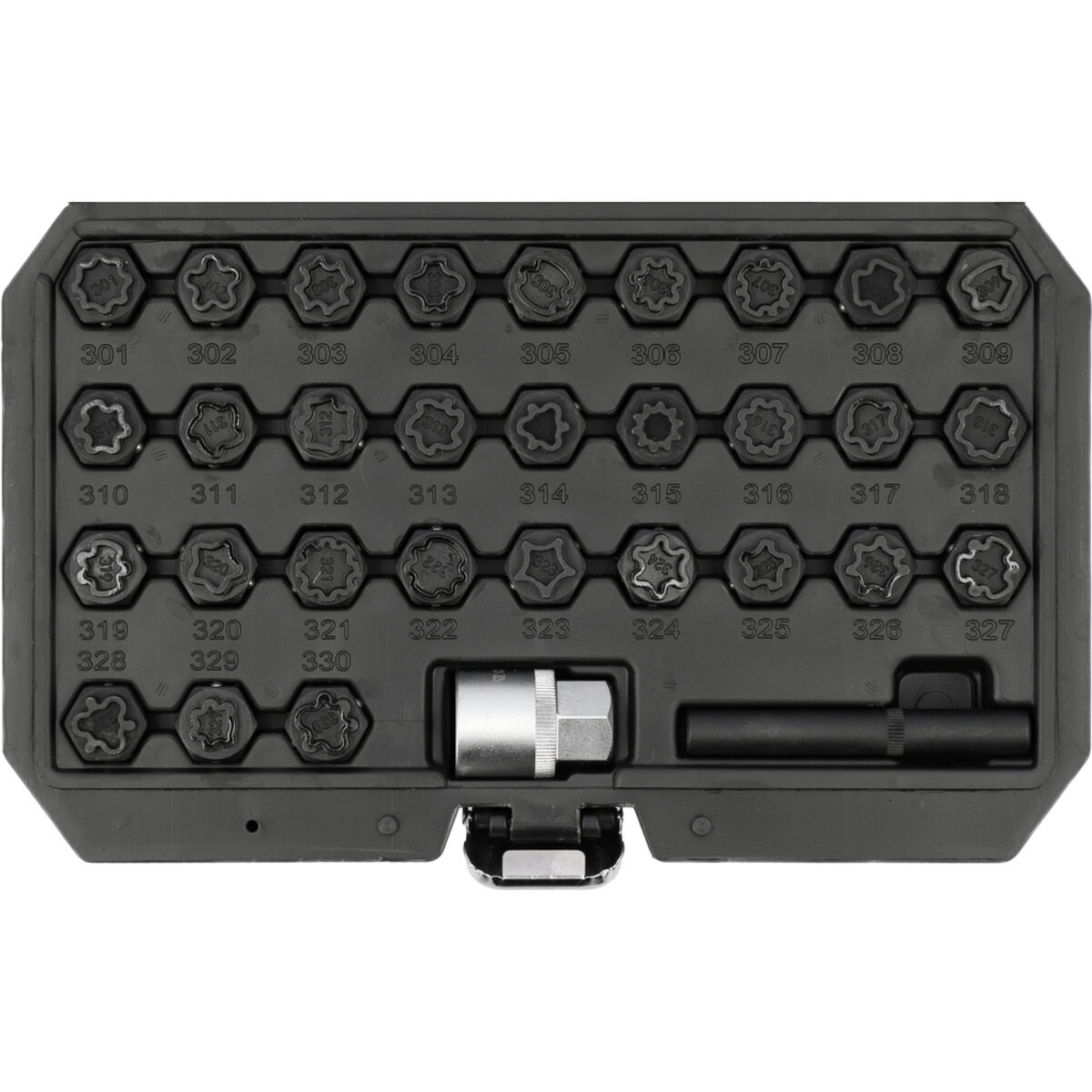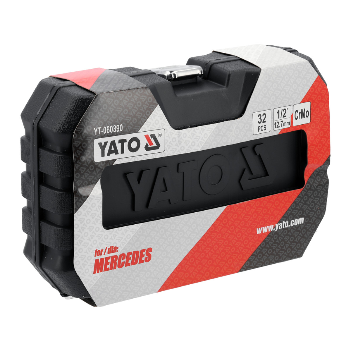 набор головок Yato Mercedes YT-060390, секретные болты Mercedes-Benz, CrMo 1/2", набор 32 шт, профессиональный инструмент Yato, кейс для шиномонтажа
